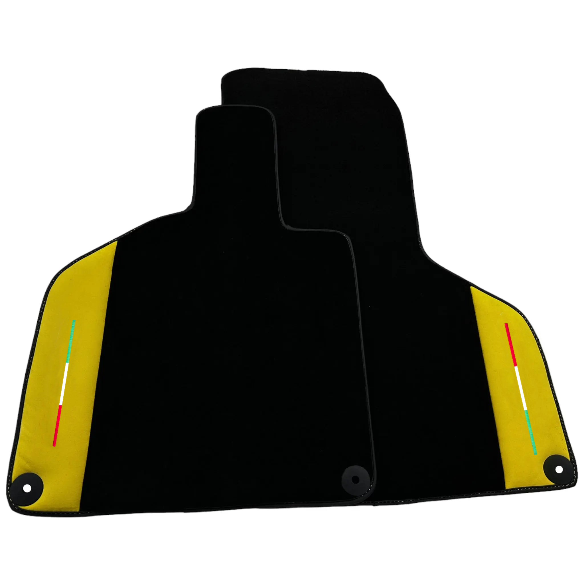 Black Floor Mats for Lamborghini Huracan with Yellow Alcantara Leather | Italian Flag