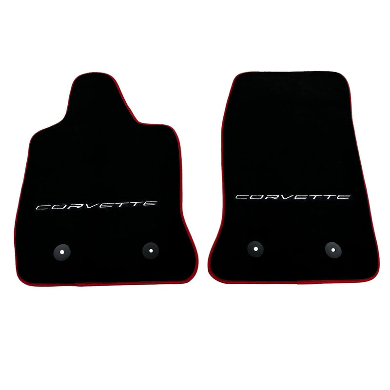 Black Floor Mats For Chevrolet Corvette C7 (2014-2019) | Red Trim