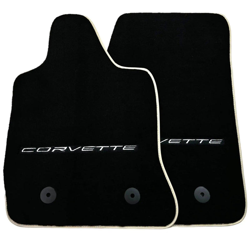 Black Floor Mats For Chevrolet Corvette C7 Targa Top (2014-2019) with Beige Trim