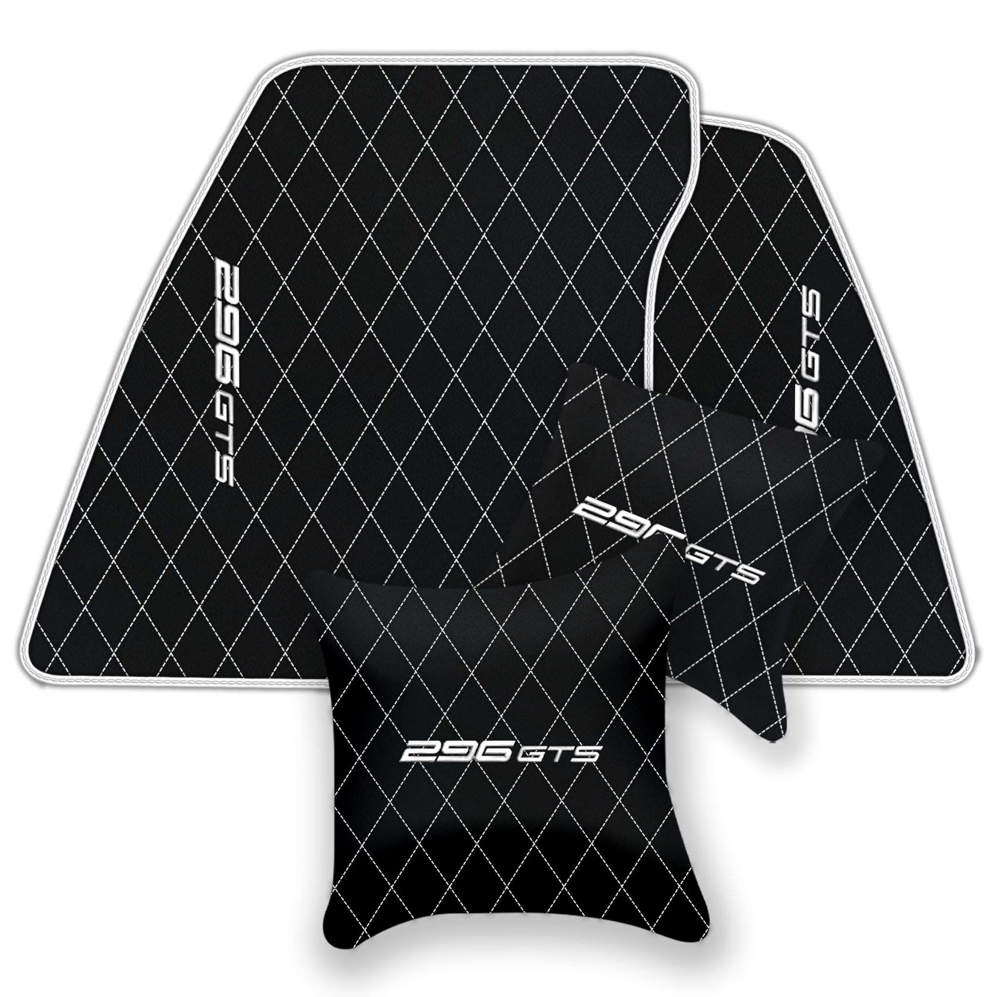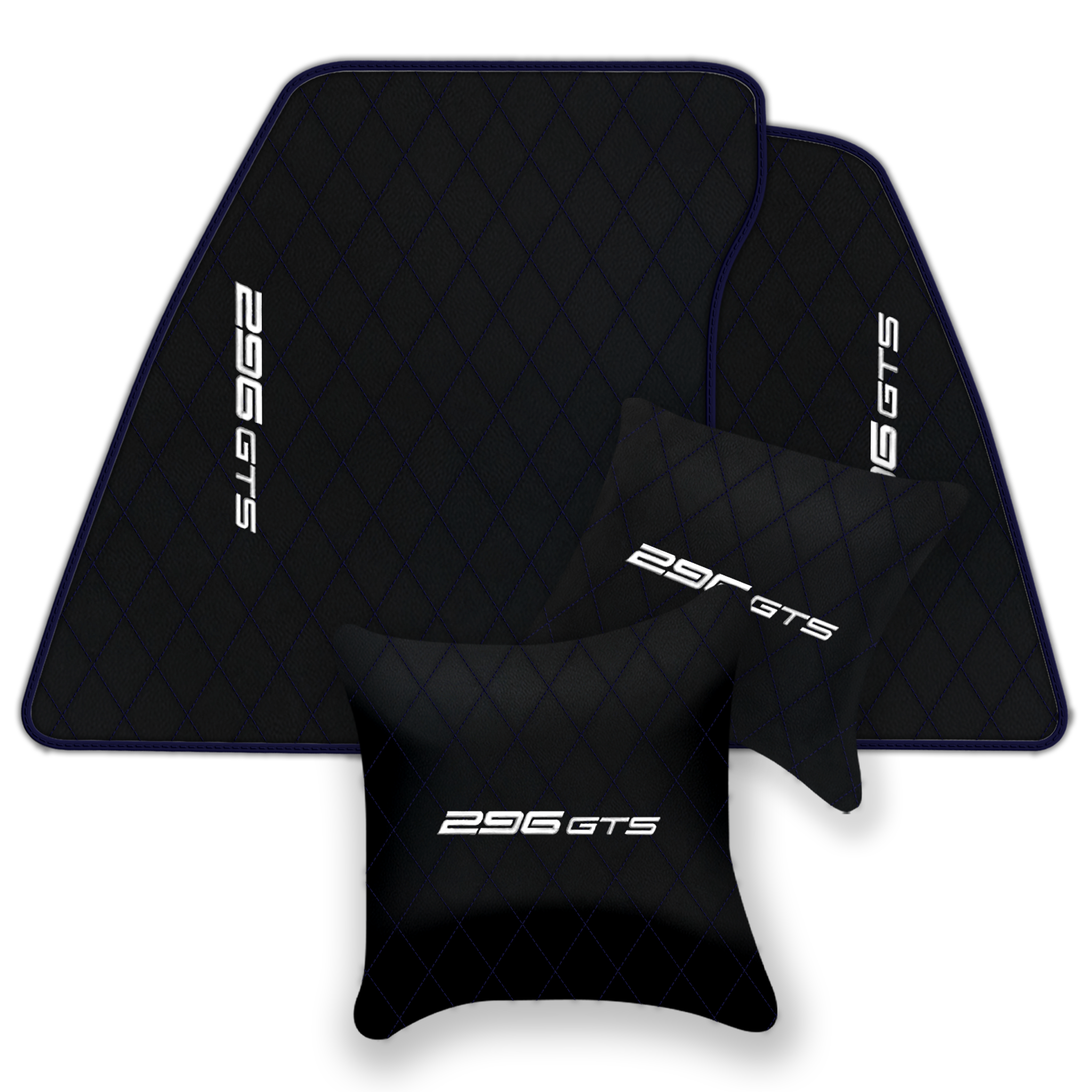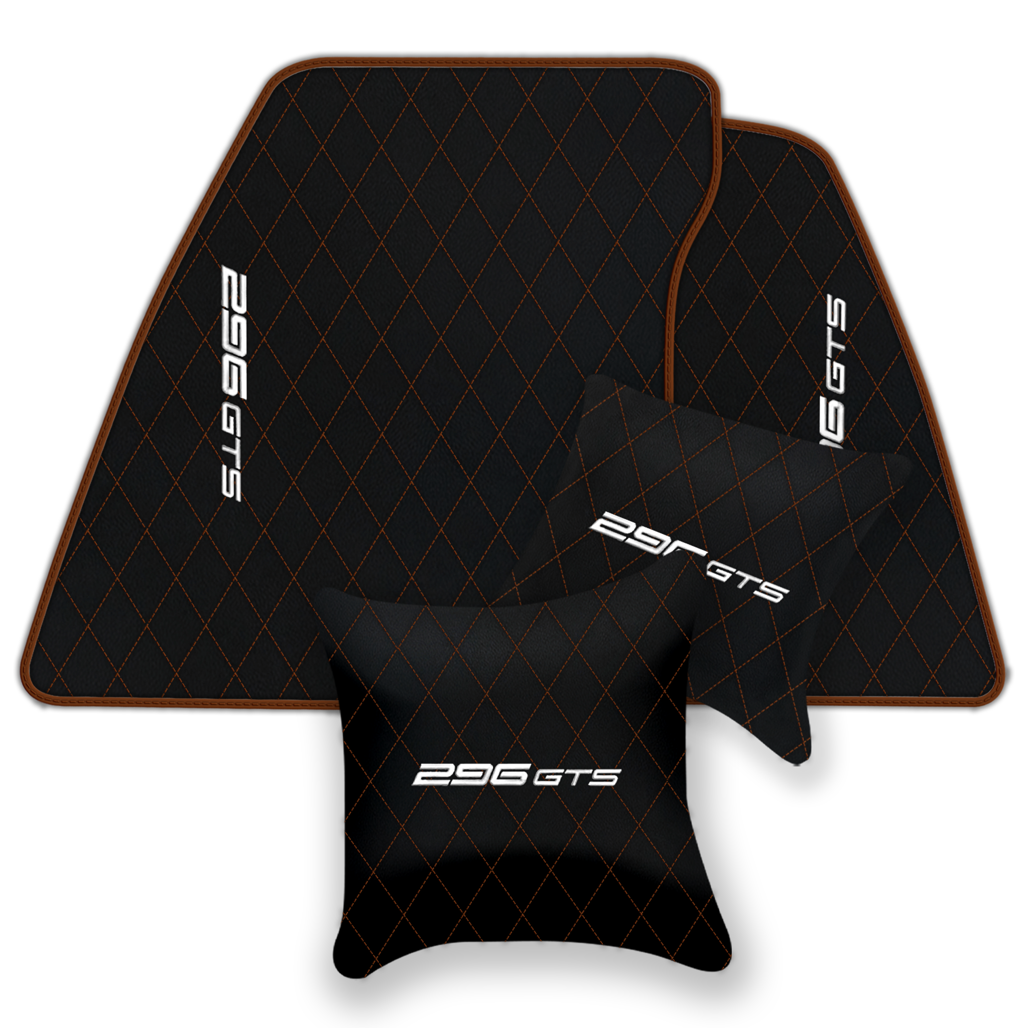 Upgrade your Ferrari 296 GTS interior with premium leather floor mats. Choose from multiple design patterns and custom stitching to match your style.