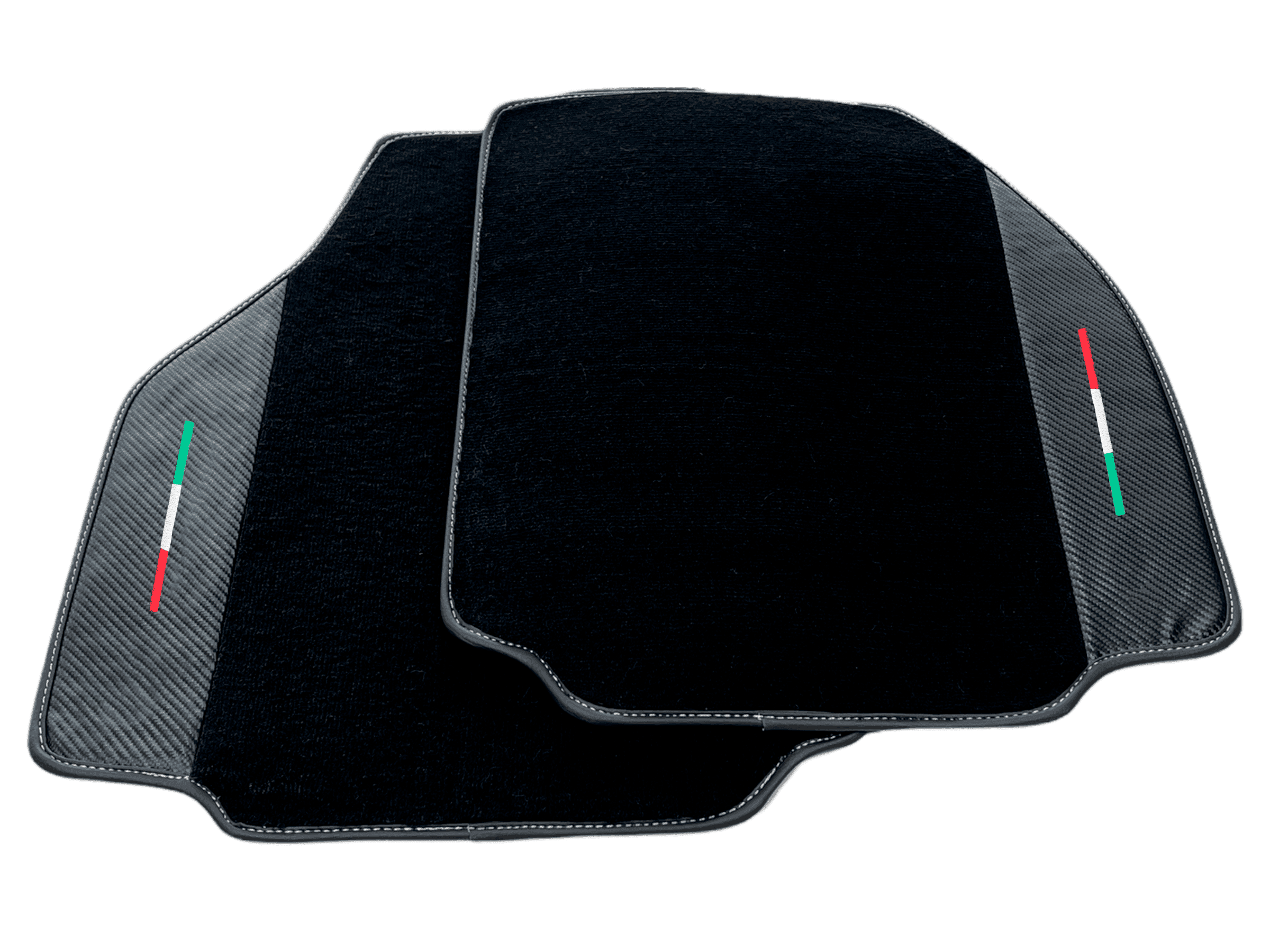 Protect your Ferrari 488 Pista Spider's interior with these sleek black floor mats. Made with carbon fiber leather, these mats provide a durable and stylish addition to your vehicle. Keep your car looking pristine while driving in complete comfort.