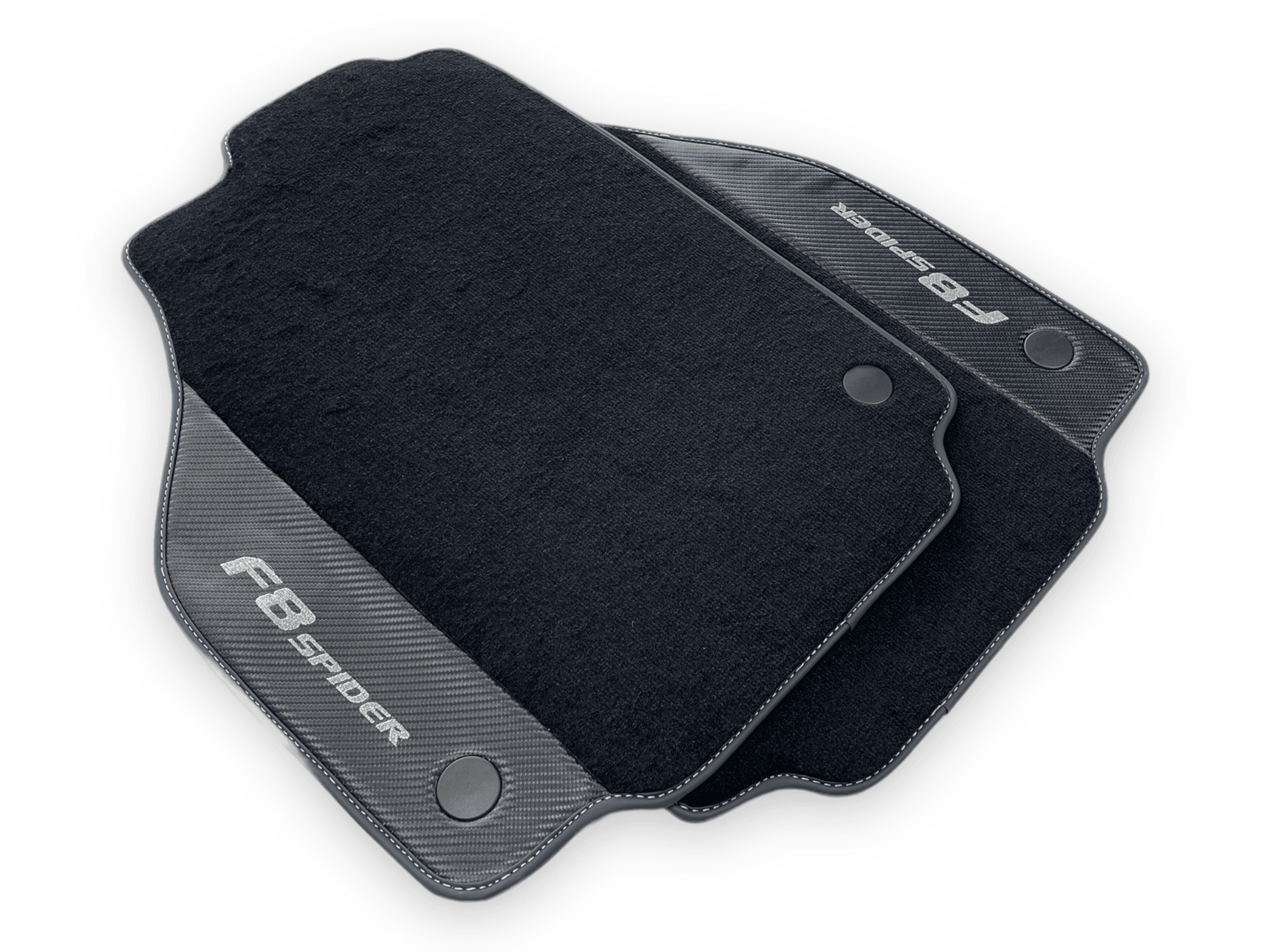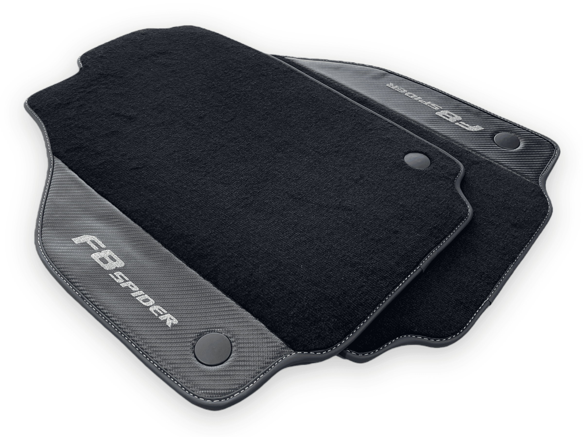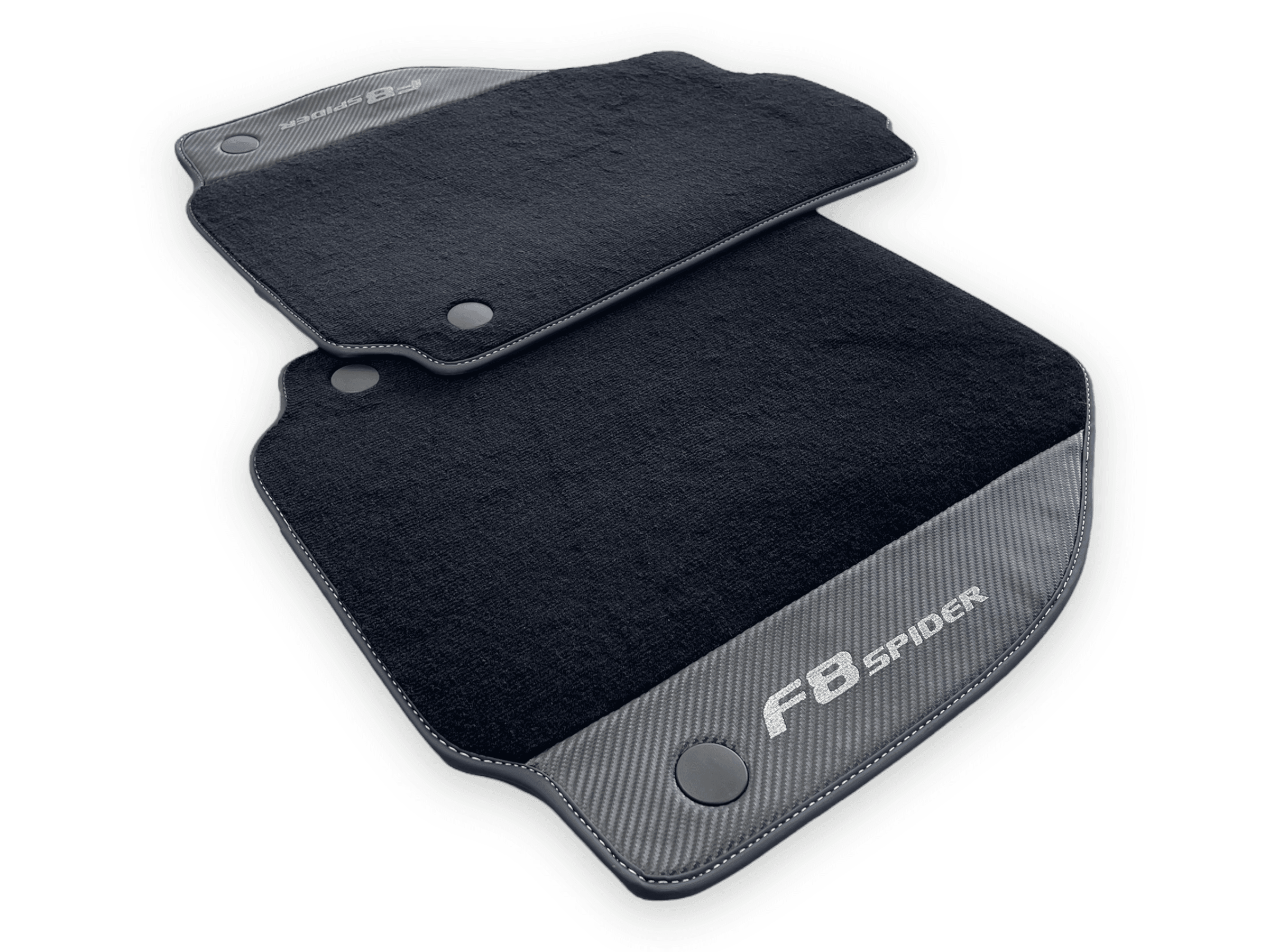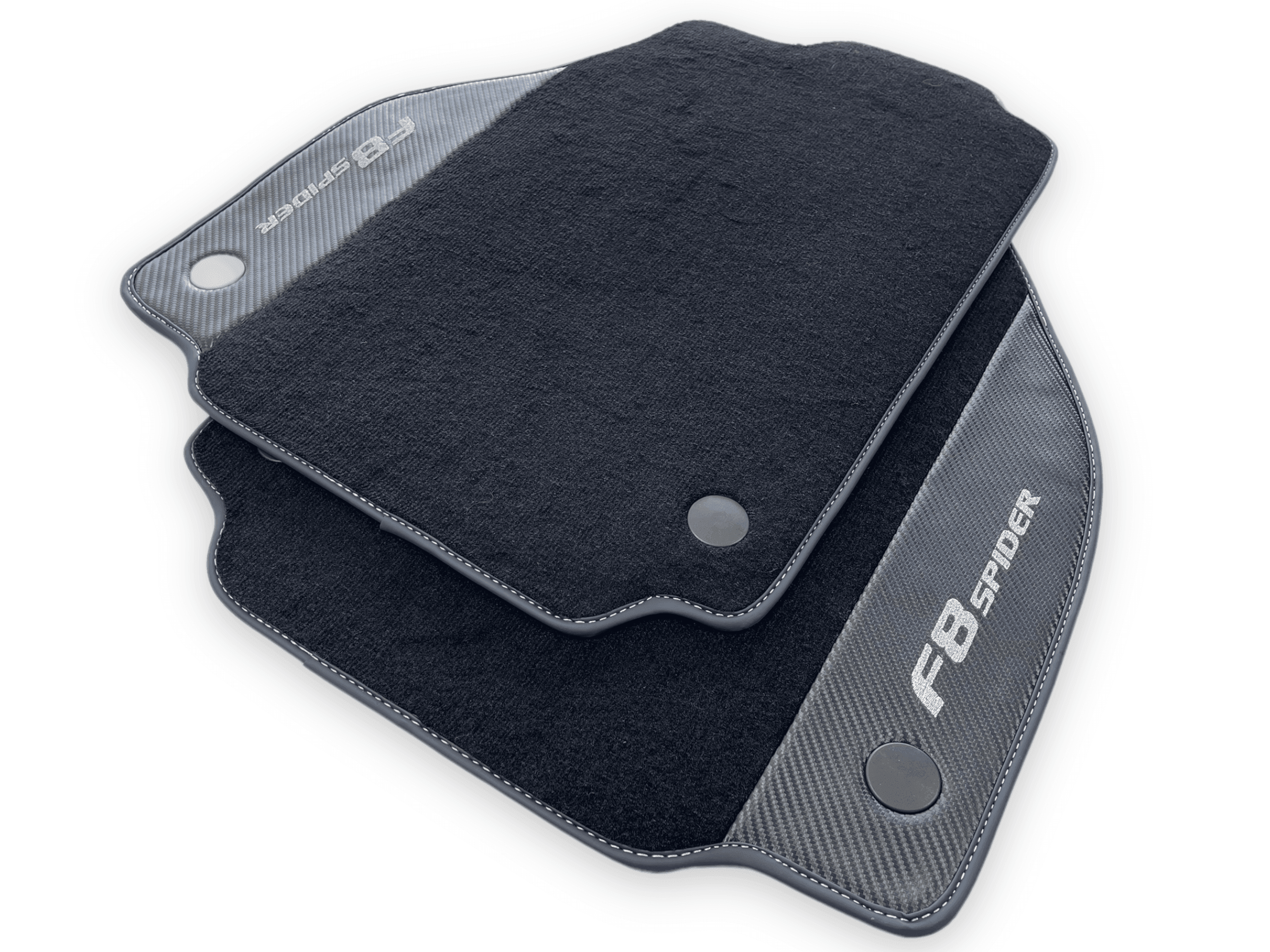 Enhance the interior of your Ferrari F8 Spider 2019-2022 with these premium Floor Mats. Made with Carbon Fiber Leather, these floor mats not only provide a sleek and stylish look, but also offer durability and protection for your vehicle's flooring. Elevate your driving experience with these high-quality mats.