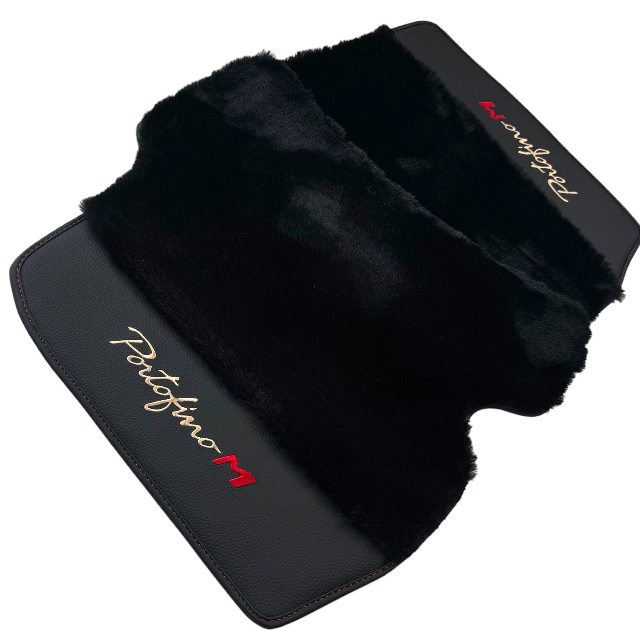 Black Sheepskin Floor Mats for Ferrari Portofino M (2018-2023) with Leather