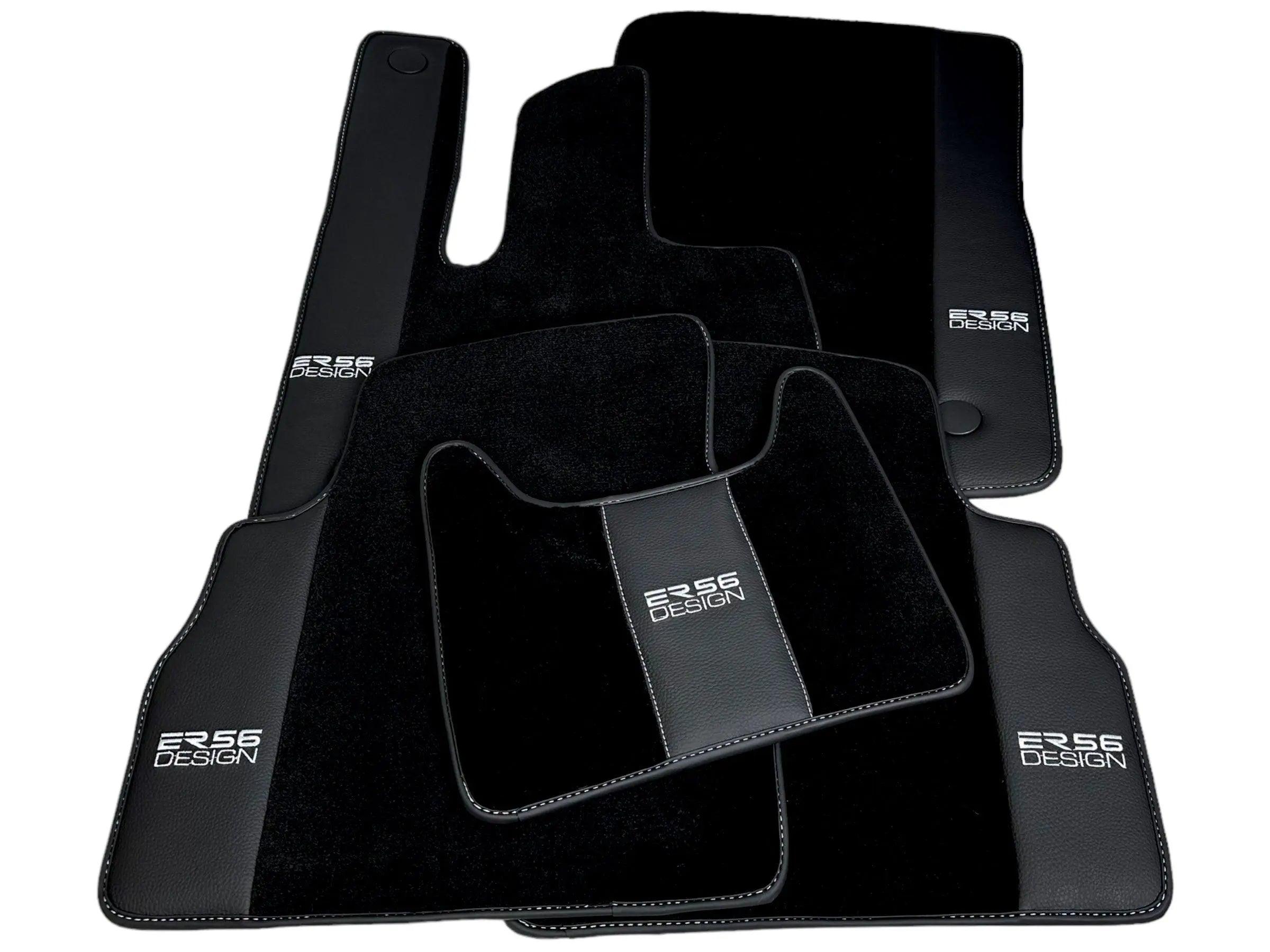 Black Floor Mats For Mercedes-Benz G Class W463 (2008-2018) With Leather Borders ER56 Design