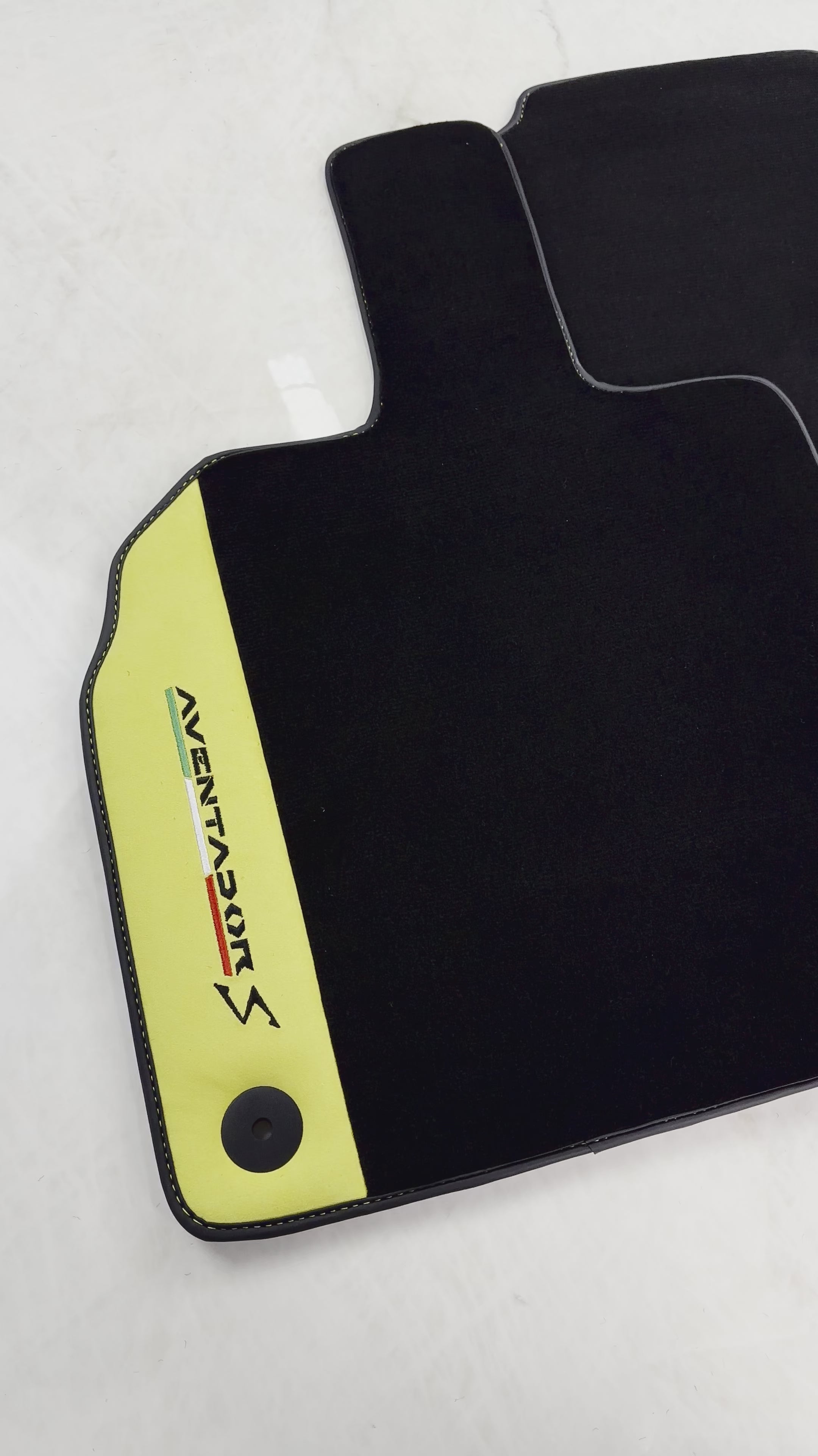 Schwarze Fußmatten für Lamborghini Aventador S mit gelbem Alcantara-Leder