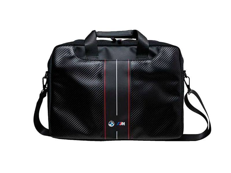 BMW Laptoptasche 15" – Carbon Red Stripes | Schwarz, passend für Geräte bis 16", Öko-Leder und Nylon