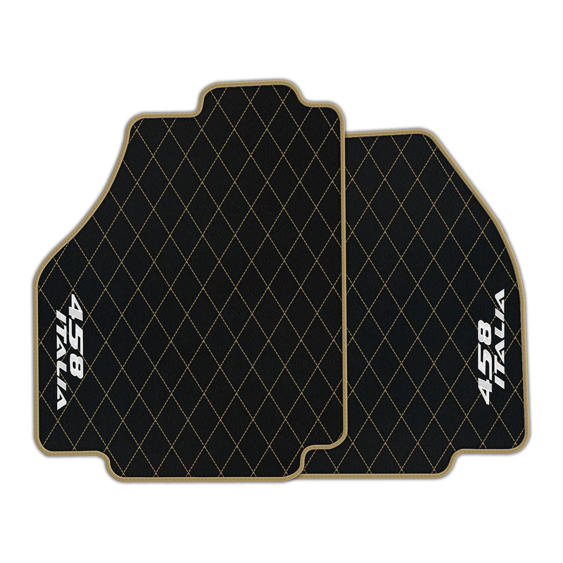 Schwarze Lederfußmatten für Ferrari 458 Italia (2009–2015) mit Rautenmuster | Komplettset