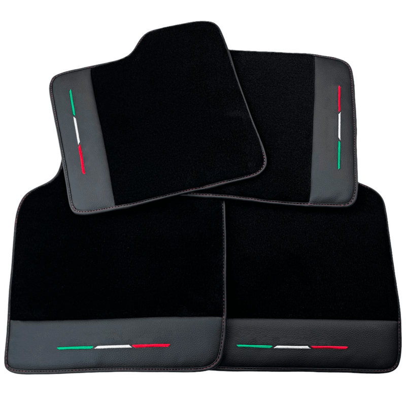 Schwarze Fußmatten für Ferrari Purosangue mit Leder und schwarzem Rand | Italienische Ausgabe