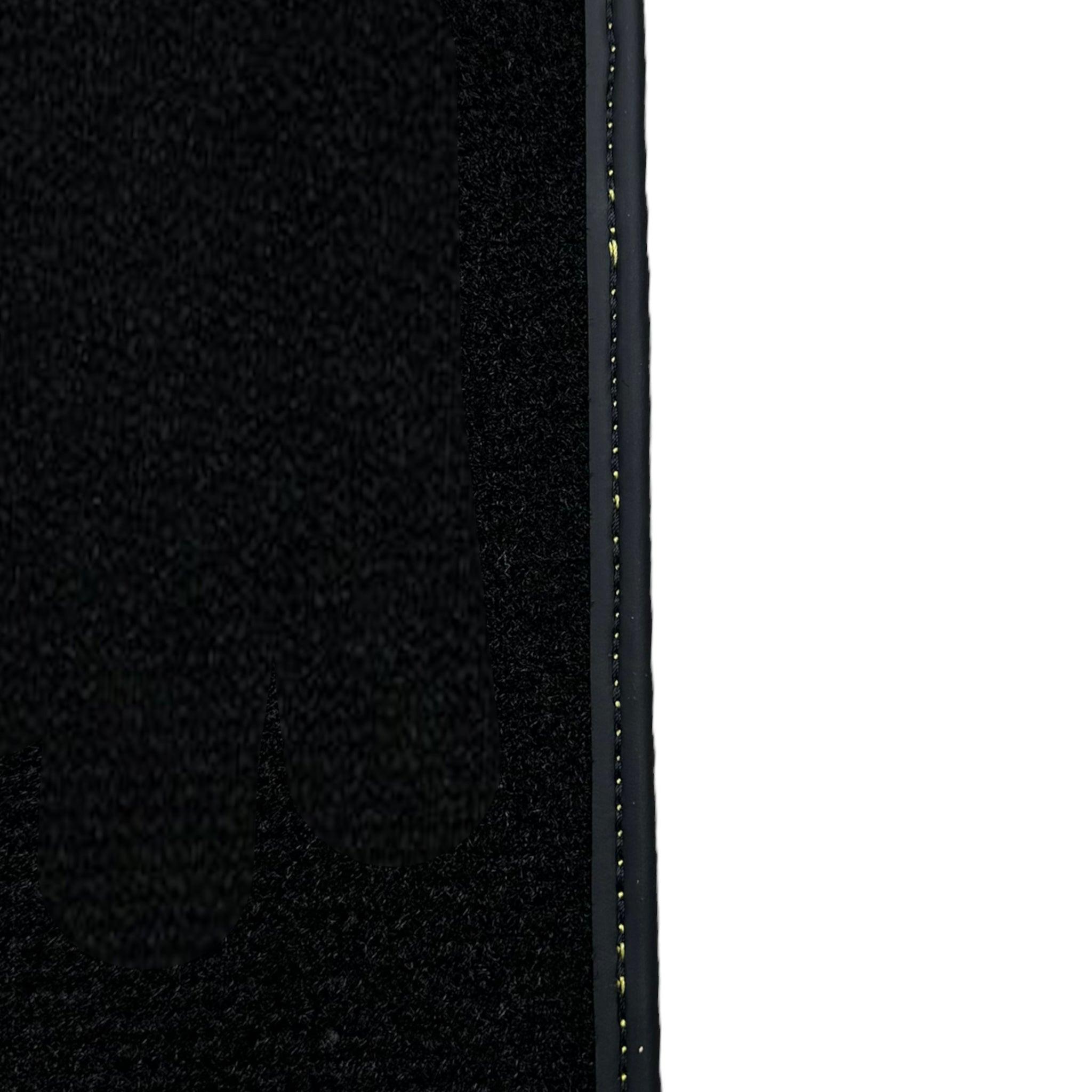 Schwarze Fußmatten für McLaren 720S Baujahr 2017–2021 mit gelbem Leder