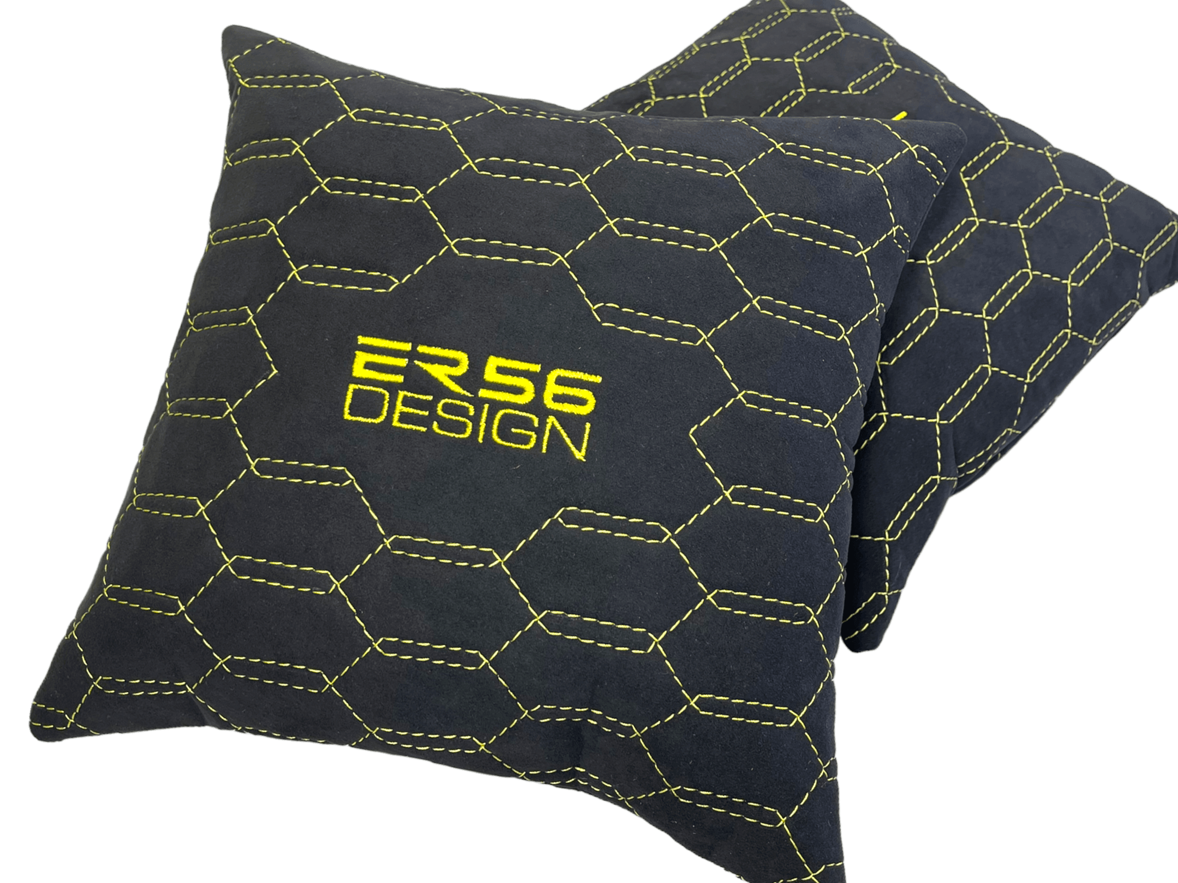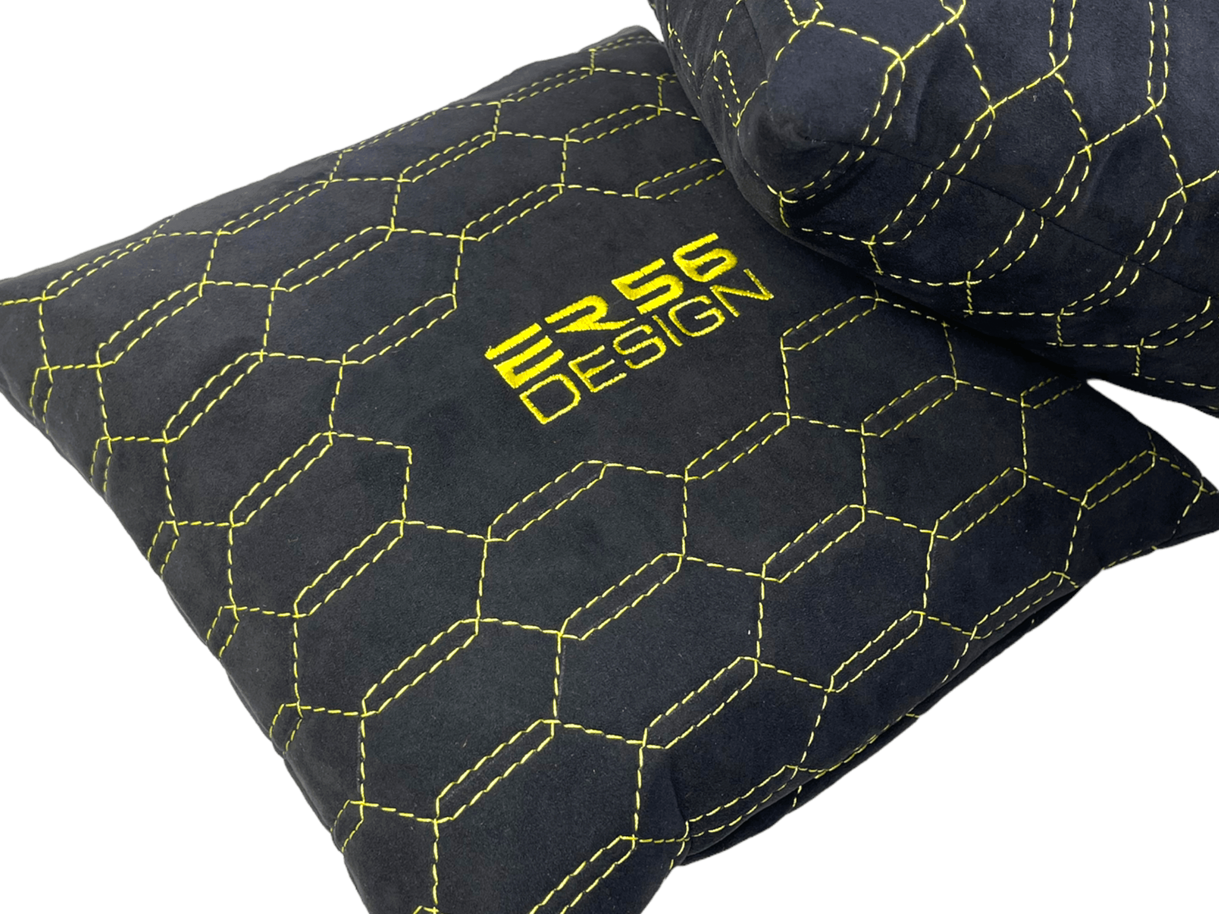 Kissen aus schwarzem Alcantara-Leder, ER56-Design, 2er-Set, gelbe Nähte