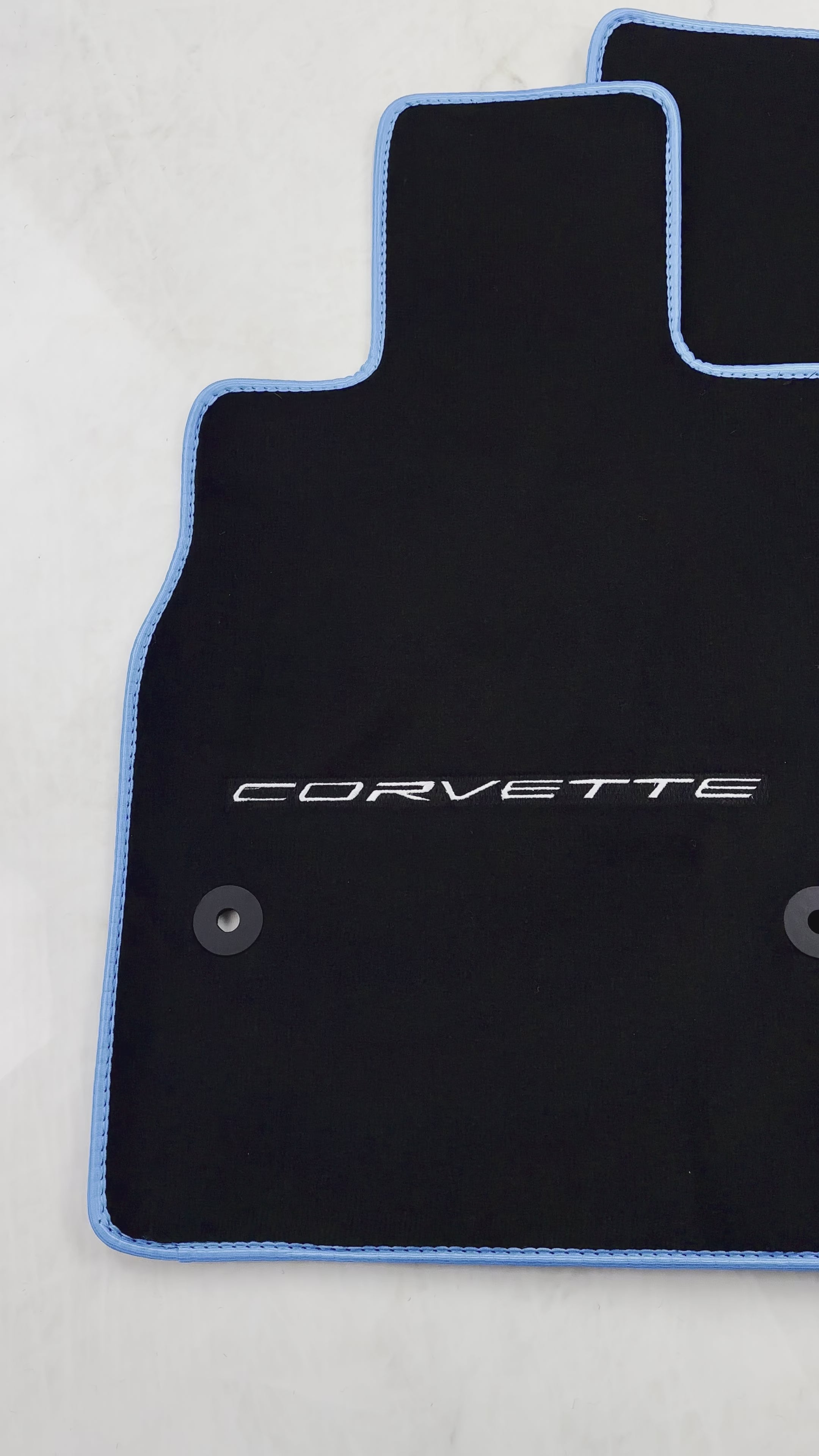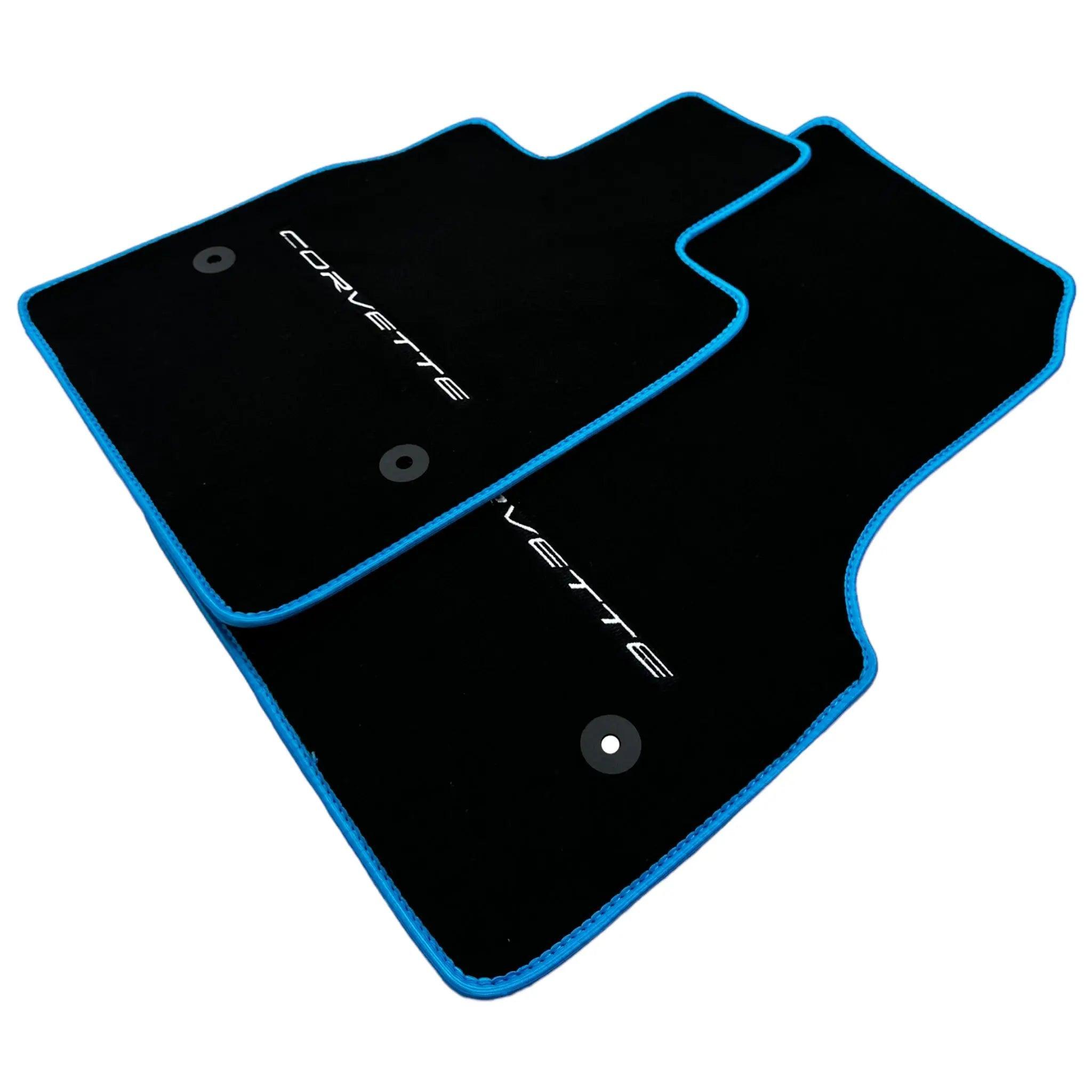 Schwarze Fußmatten für Chevrolet Corvette C8 (2020–2024) mit blauem Rand