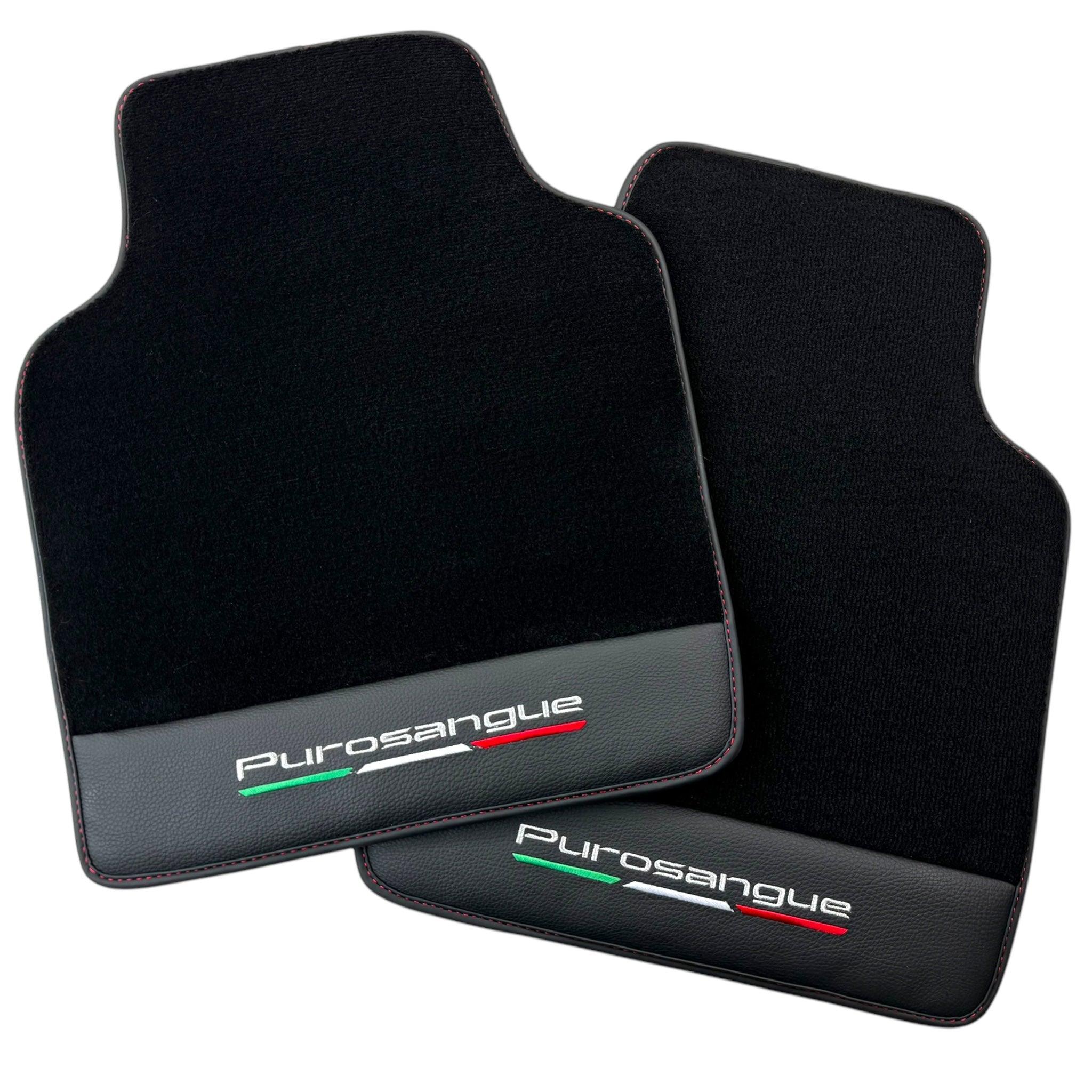 Schwarze Fußmatten für Ferrari Purosangue mit Leder und schwarzem Rand | Italienische Ausgabe