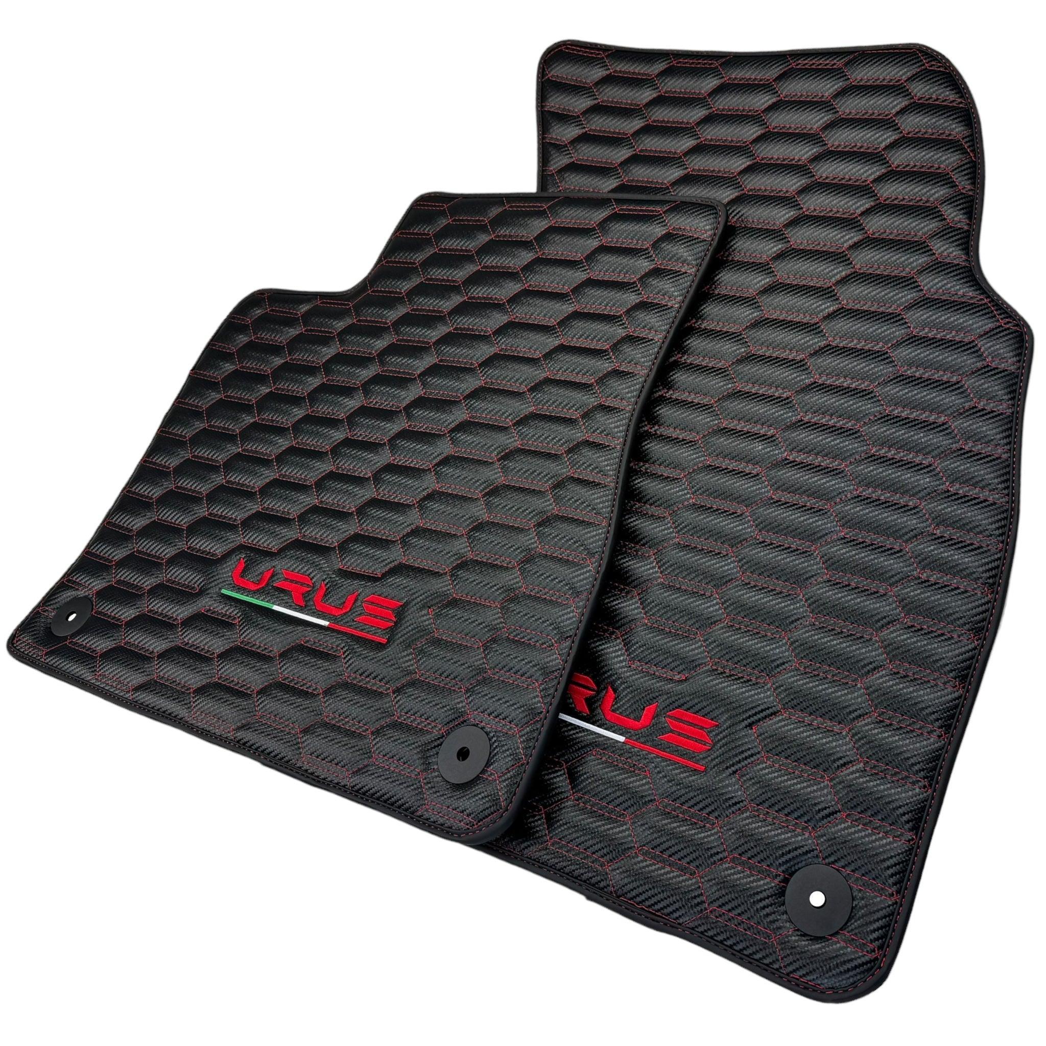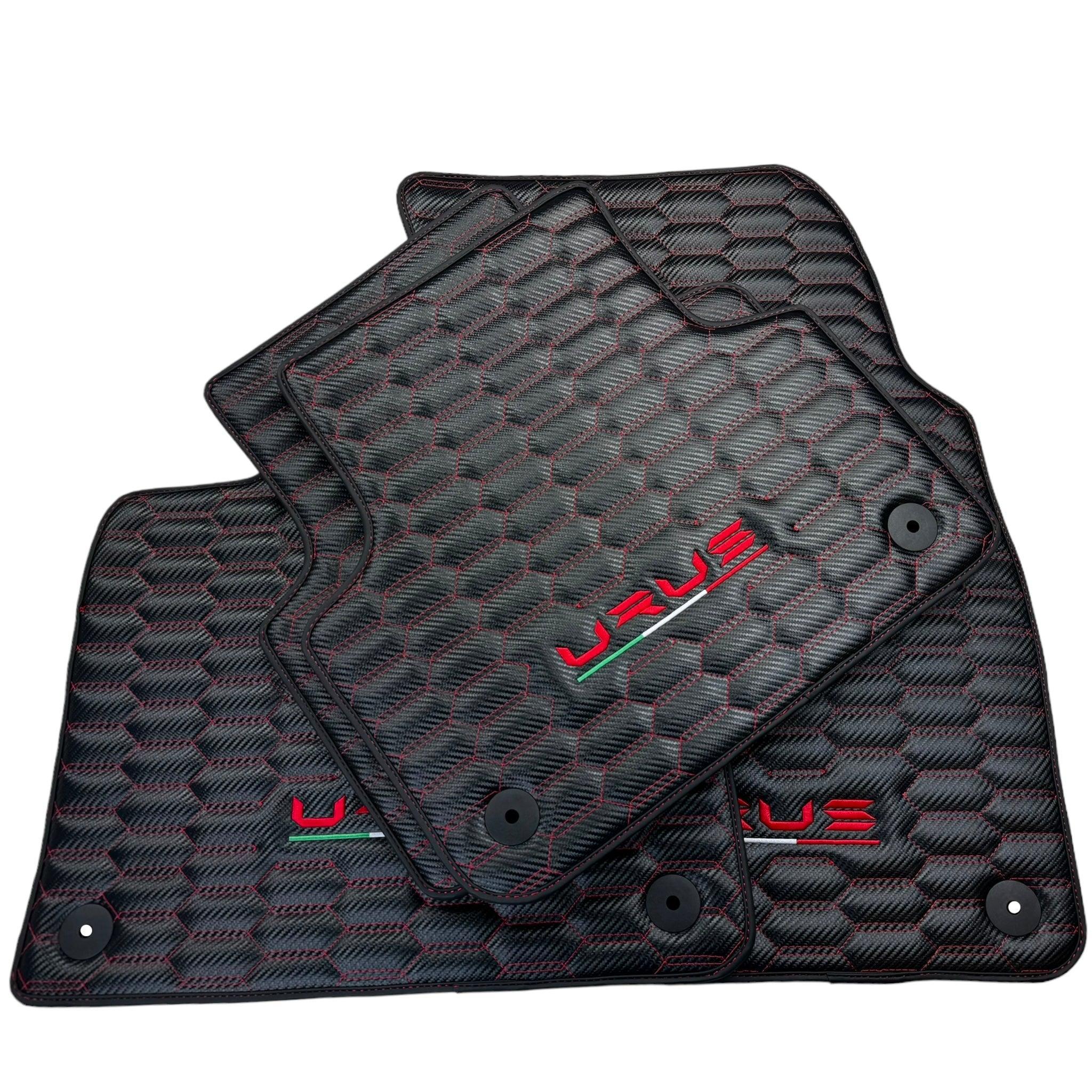 Carbonfaser-Fußmatten für Lamborghini Urus mit roten Nähten