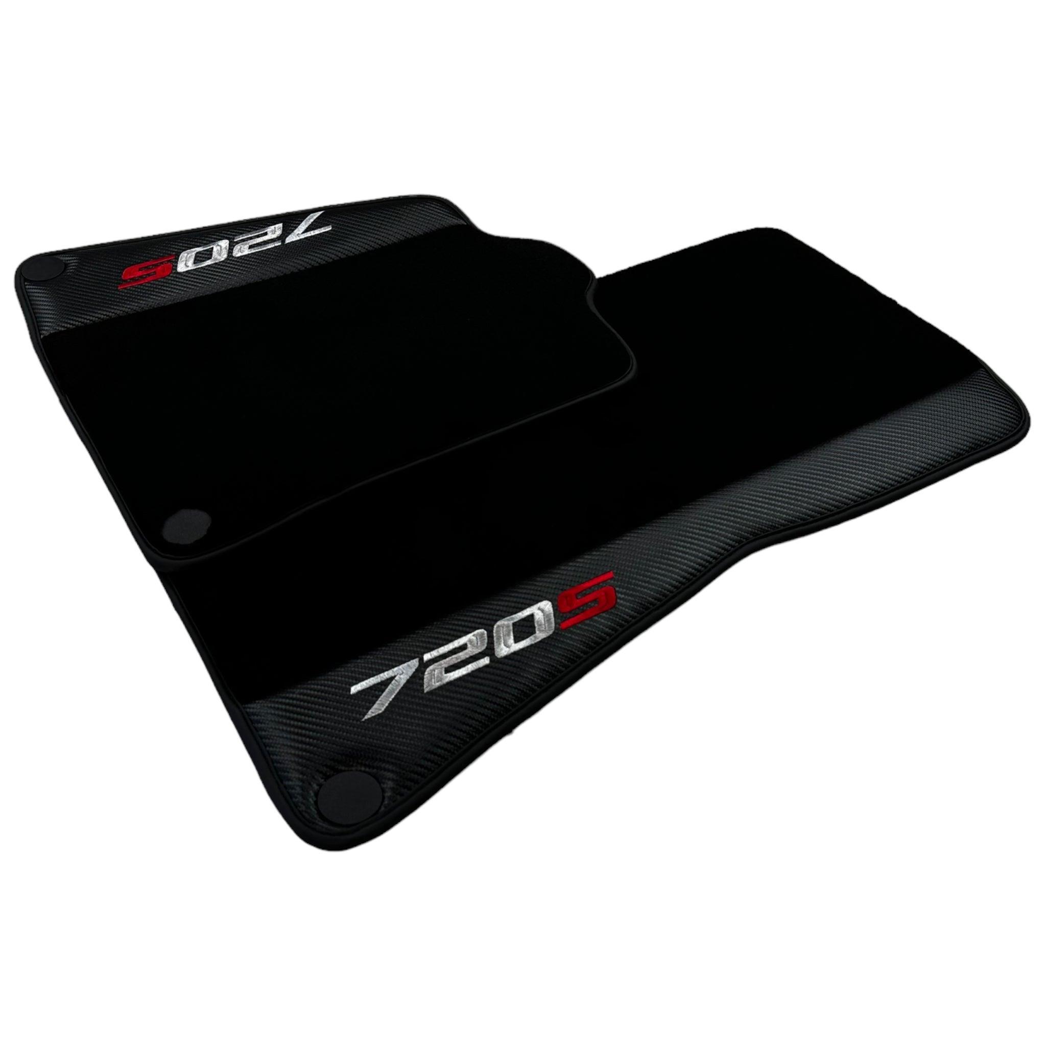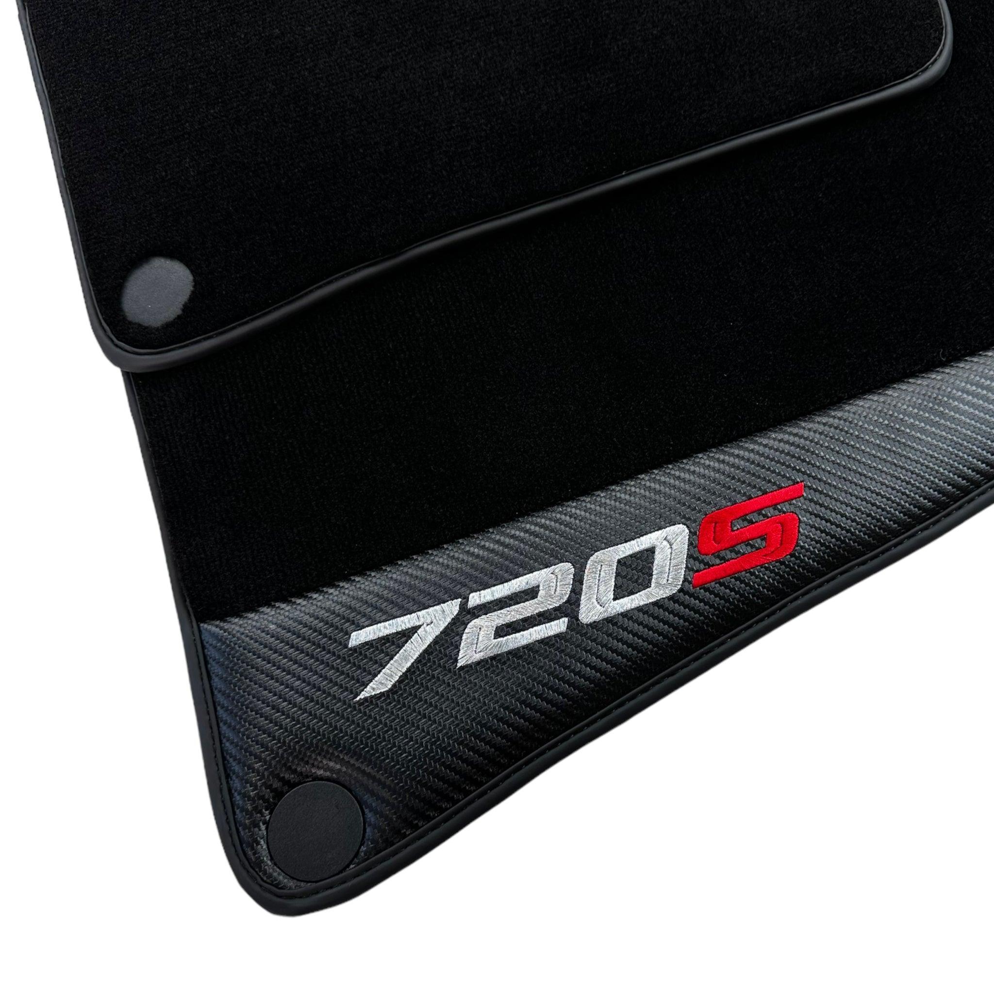 Schwarze Fußmatten für McLaren 720S (2017–2021) mit Carbon-Leder