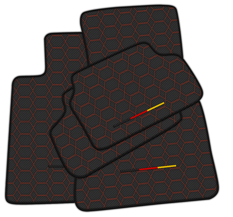 SKU: Carbon-BMW-E83 SUV (2003-2010)-Hexagon-Hex-Pattern-GermanFlag-RedStitching-ED10002