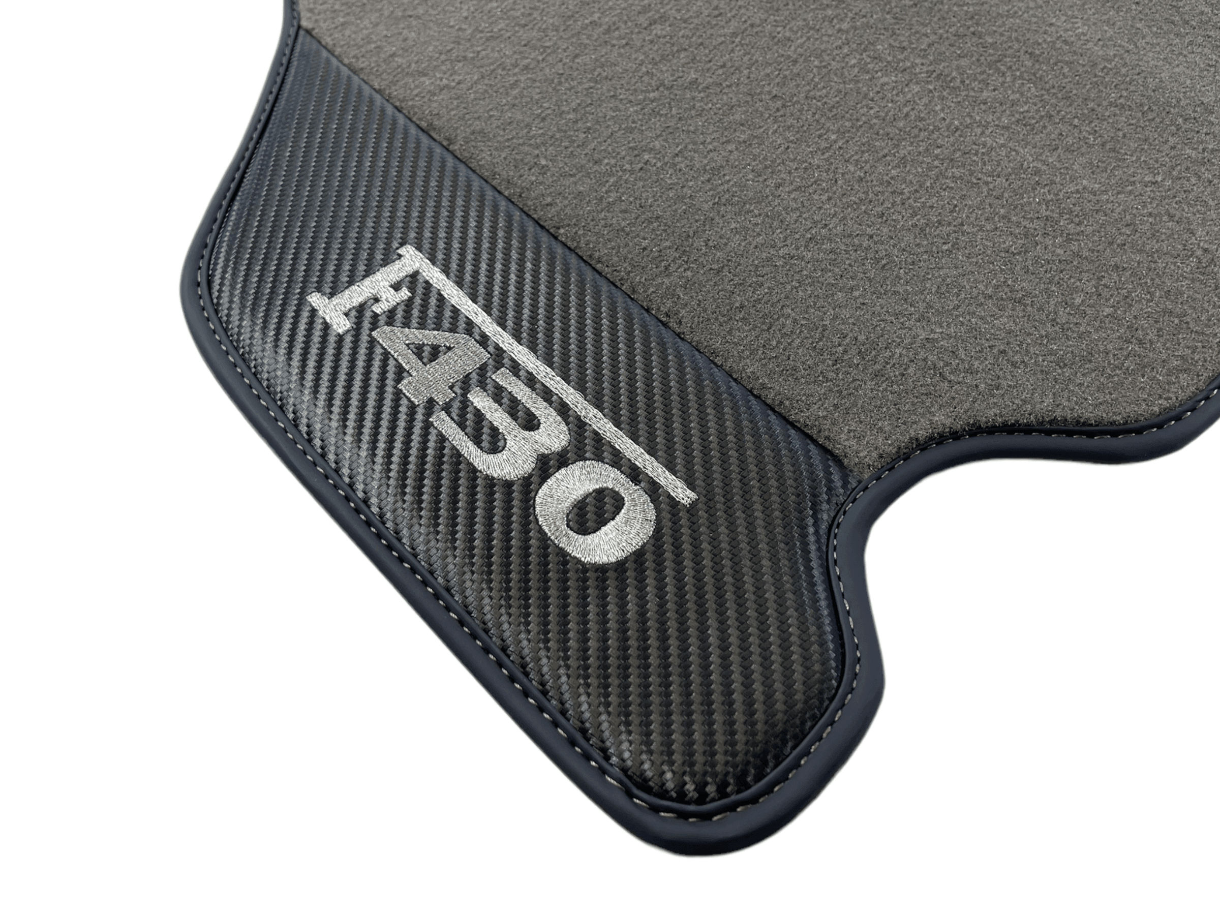 Graue Fußmatten für Ferrari F430 2004–2009 mit Kohlefaser-Leder
