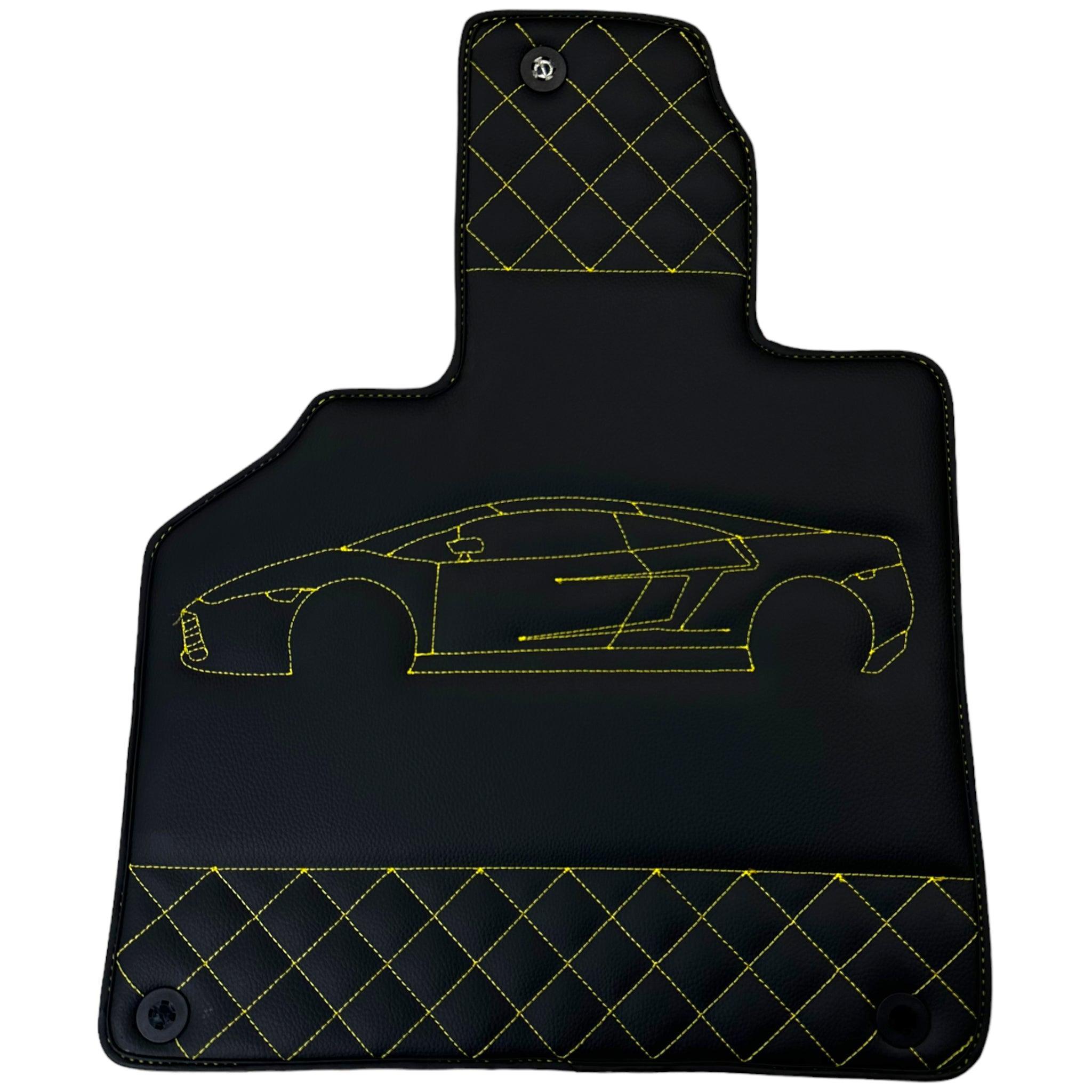 Schwarze Leder-Fußmatten für Lamborghini Gallardo, gelbe Nähte | ER56-Design