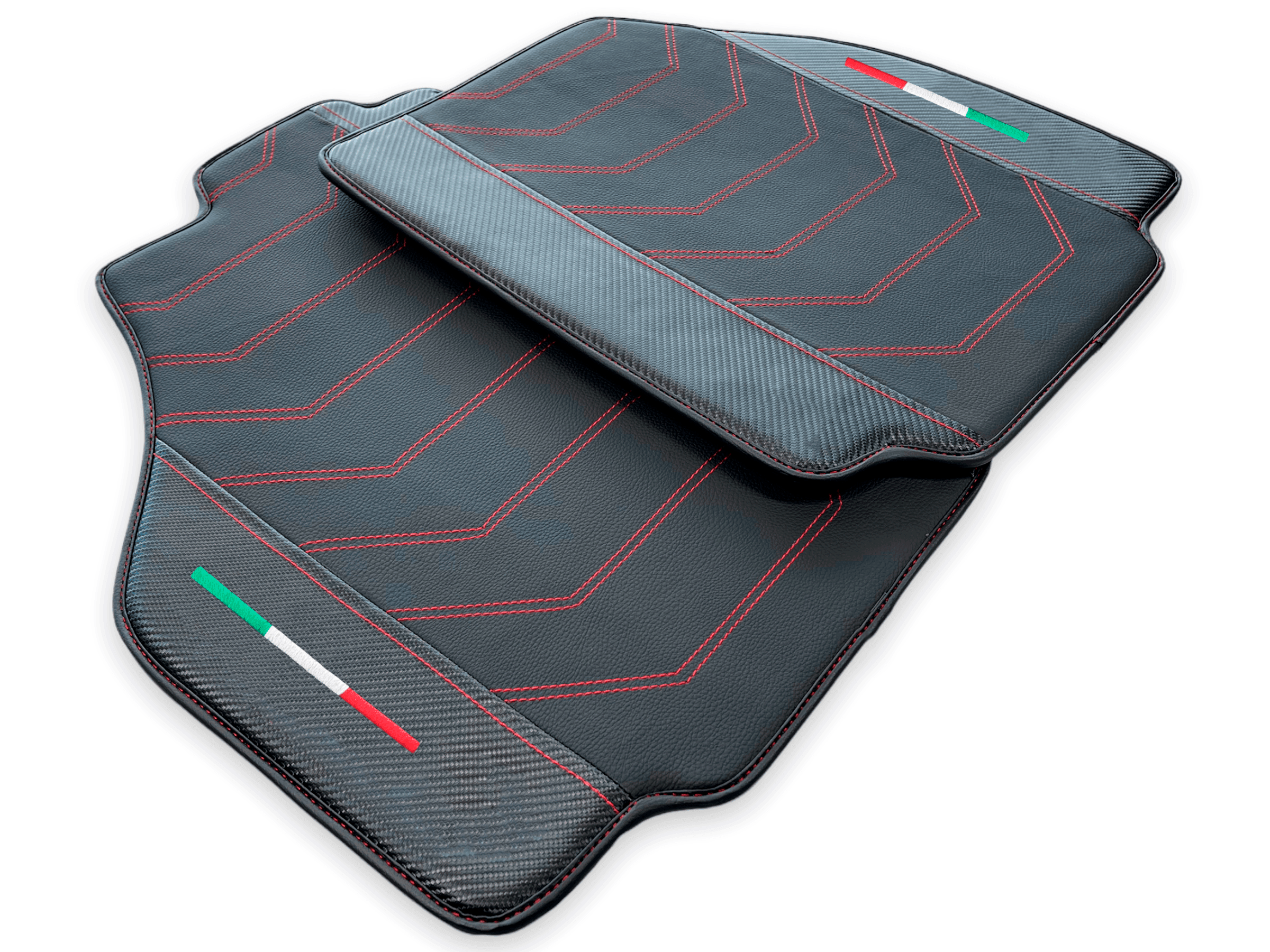 Lederfußmatten für Ferrari 488 Pista Spider (2019-2021) mit Kohlefaser | Italienische Ausgabe