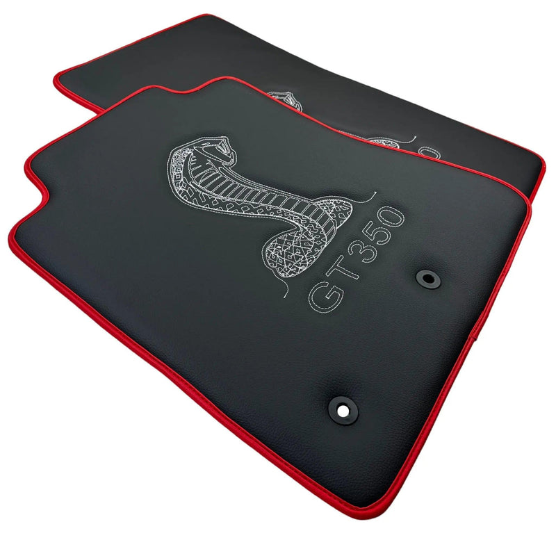 Leder-Fußmatten mit rotem Rand für Ford Mustang GT350 Shelby (2015–2021) mit Cobra-Nähung