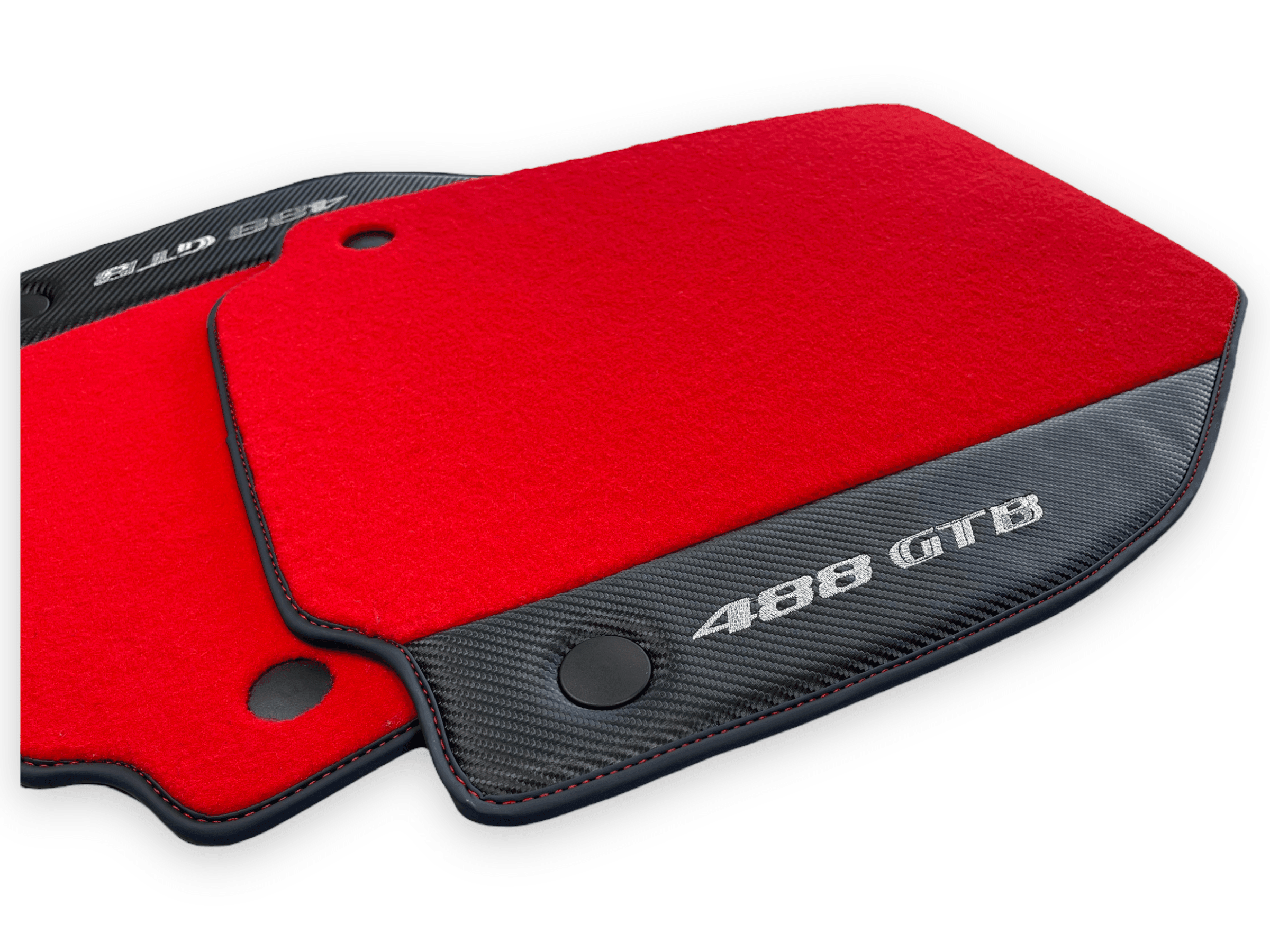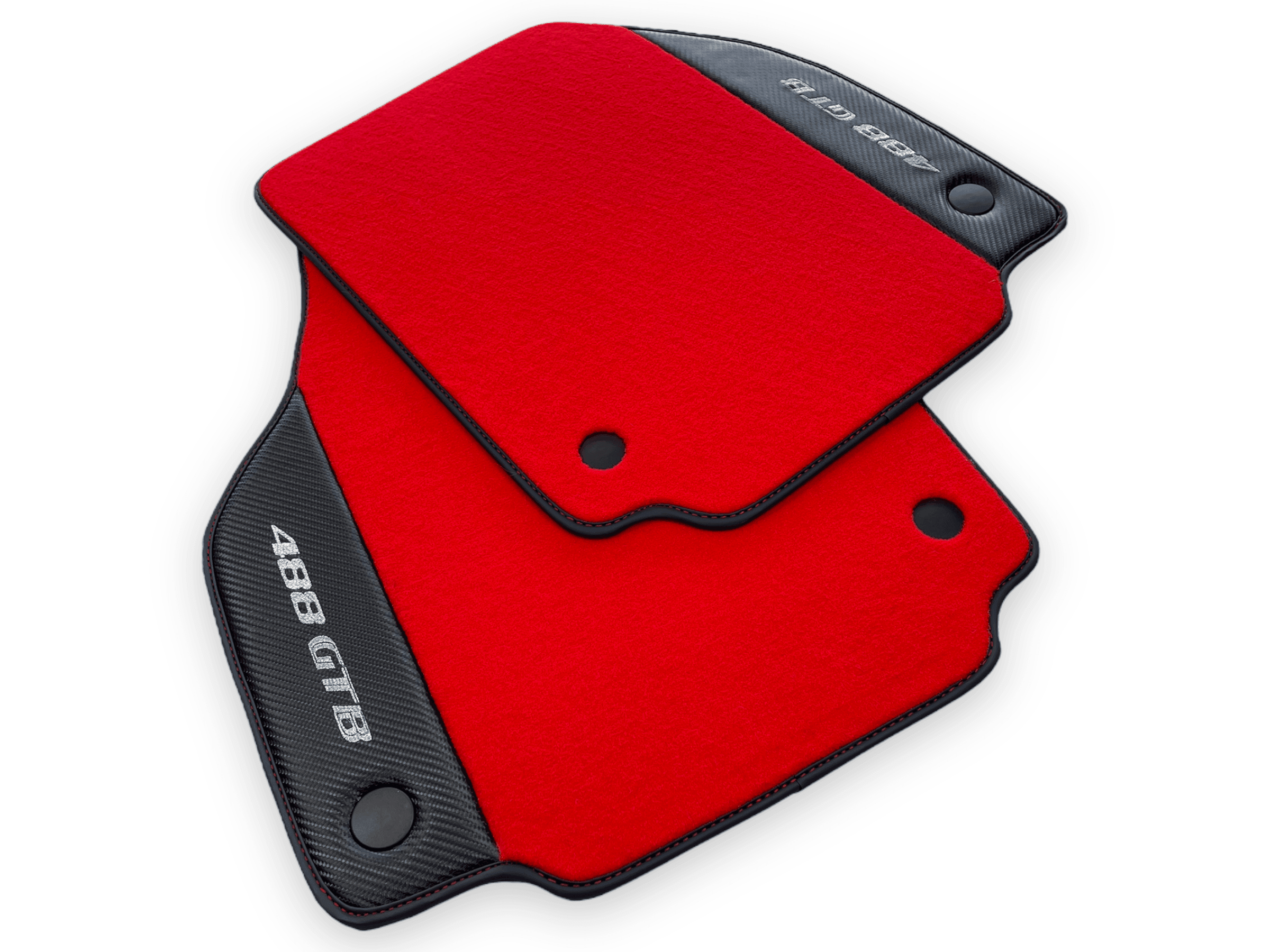 Rote Fußmatten für Ferrari 488 GTB 2015–2022, Teppiche mit Kohlefaser