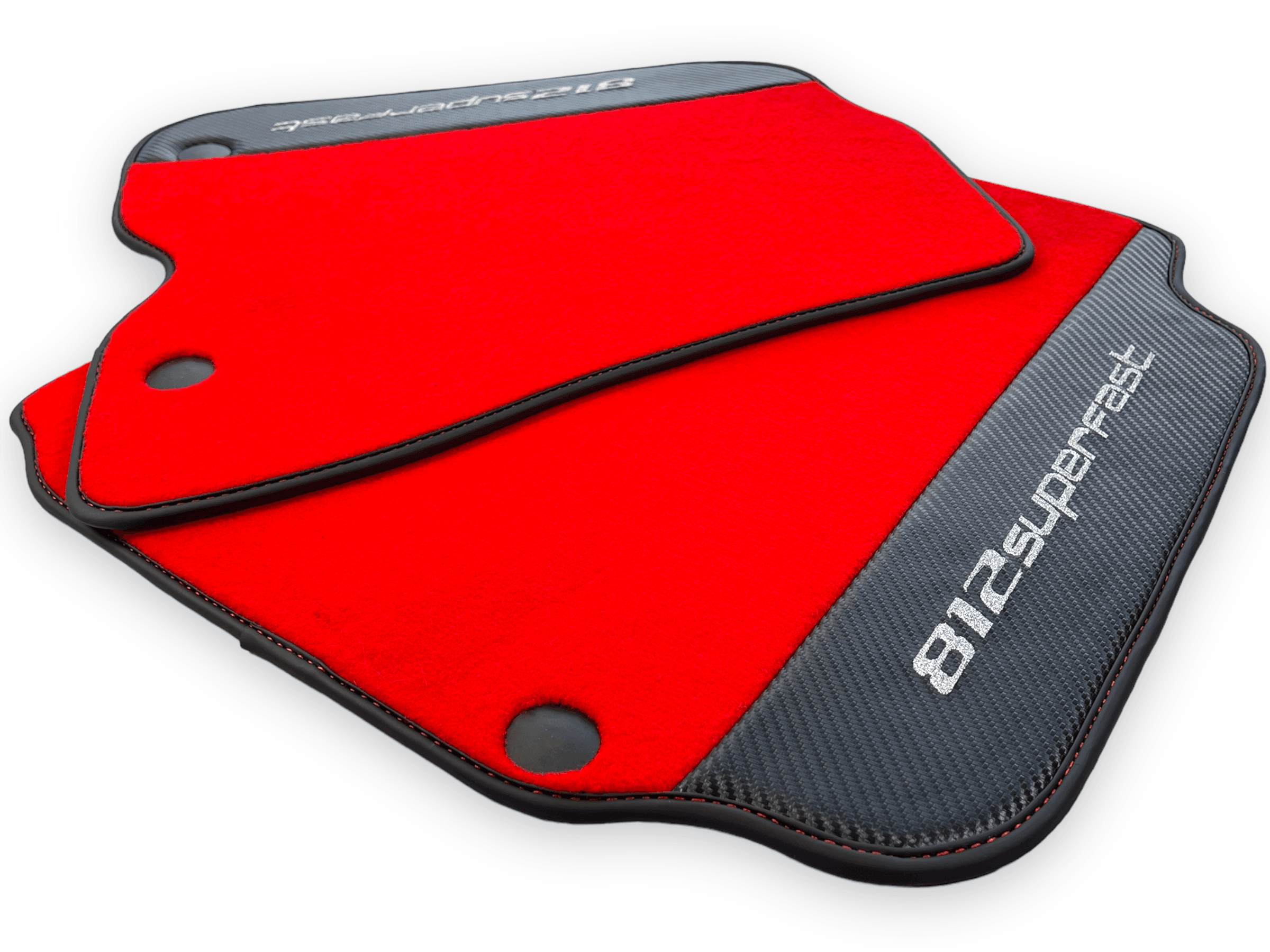 Rote Fußmatten für Ferrari 812 Superfast mit Carbonfaser-Leder