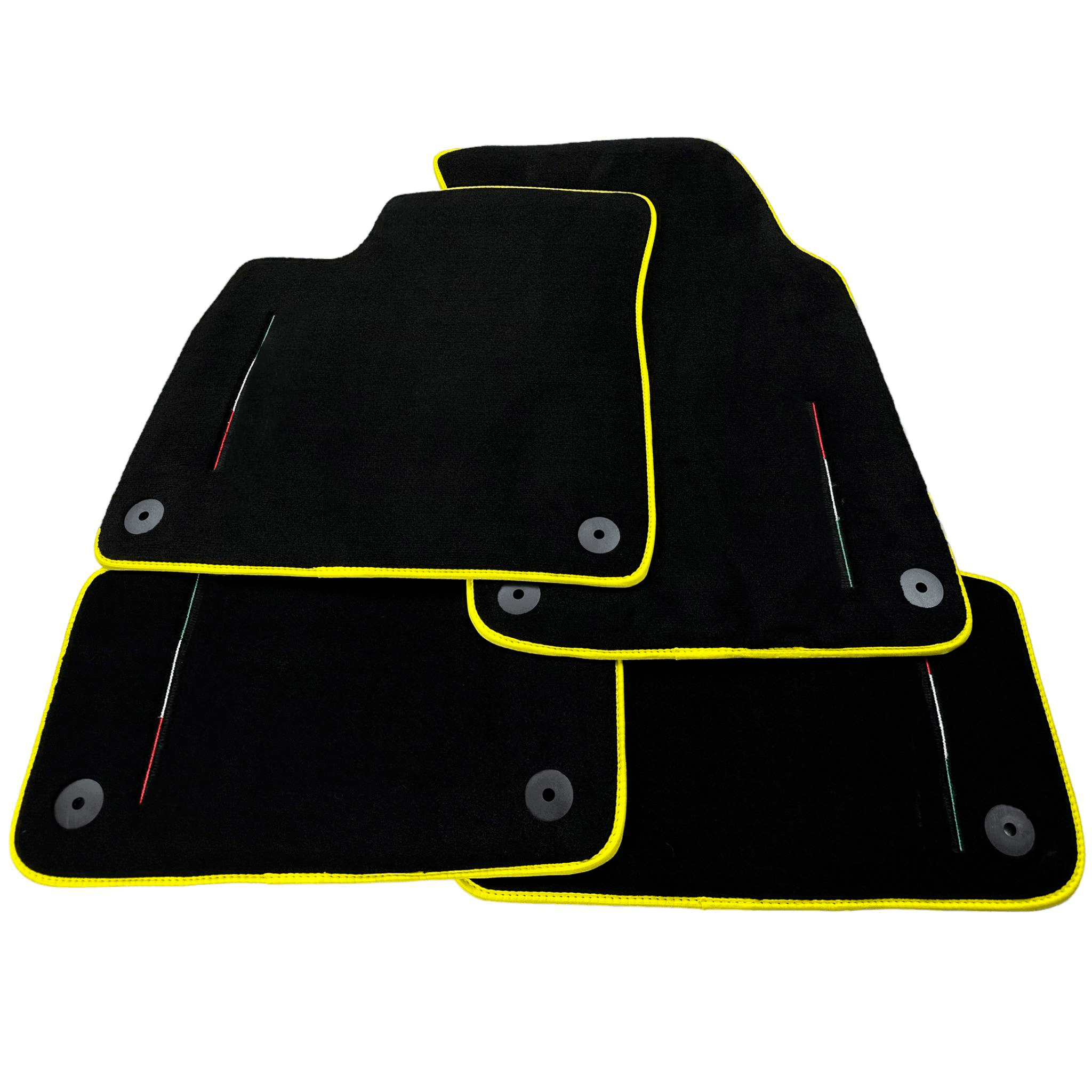 Schwarze Fußmatten für Lamborghini Urus, maßgeschneidert mit gelbem Rand