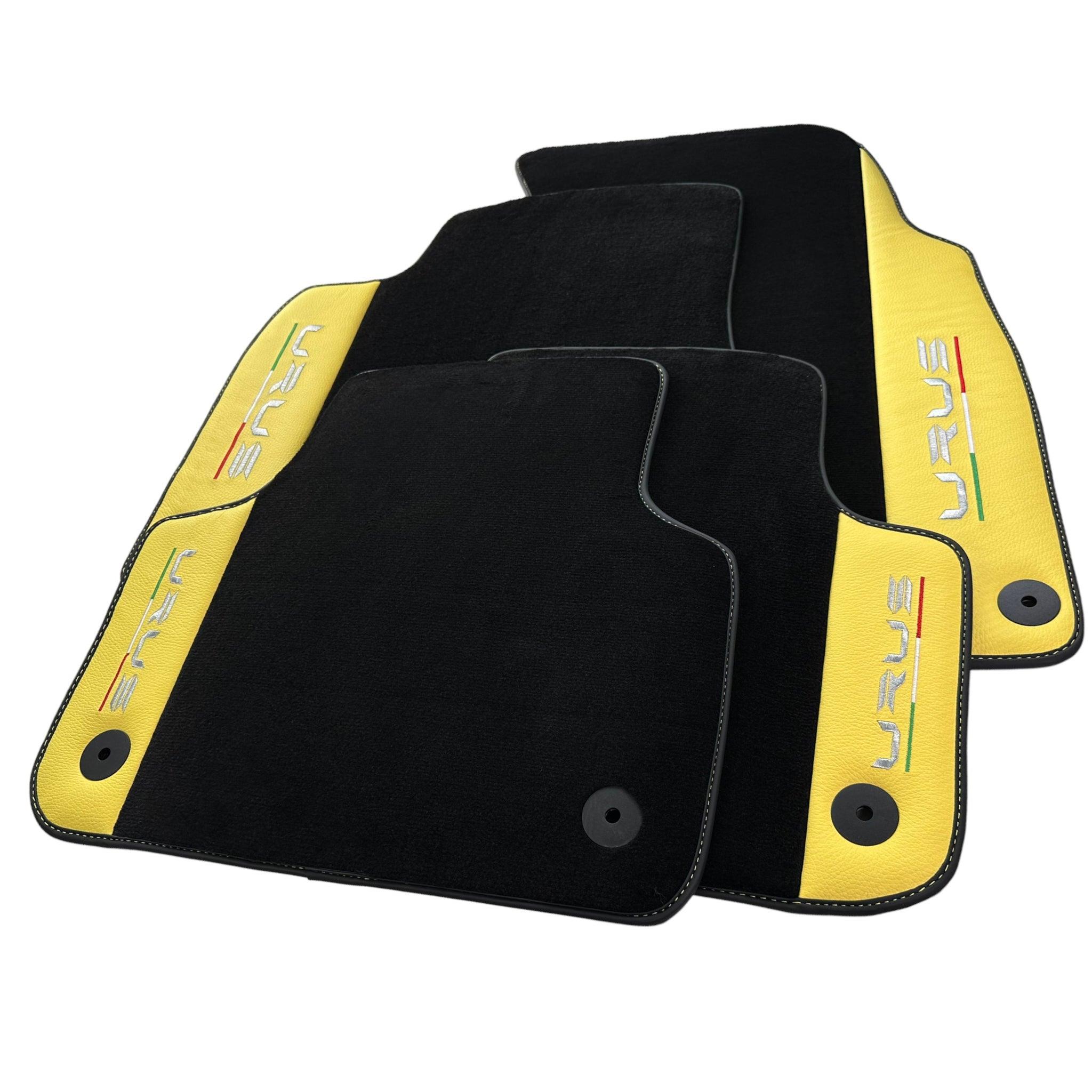 Schwarze Fußmatten für Lamborghini Urus mit gelbem Leder