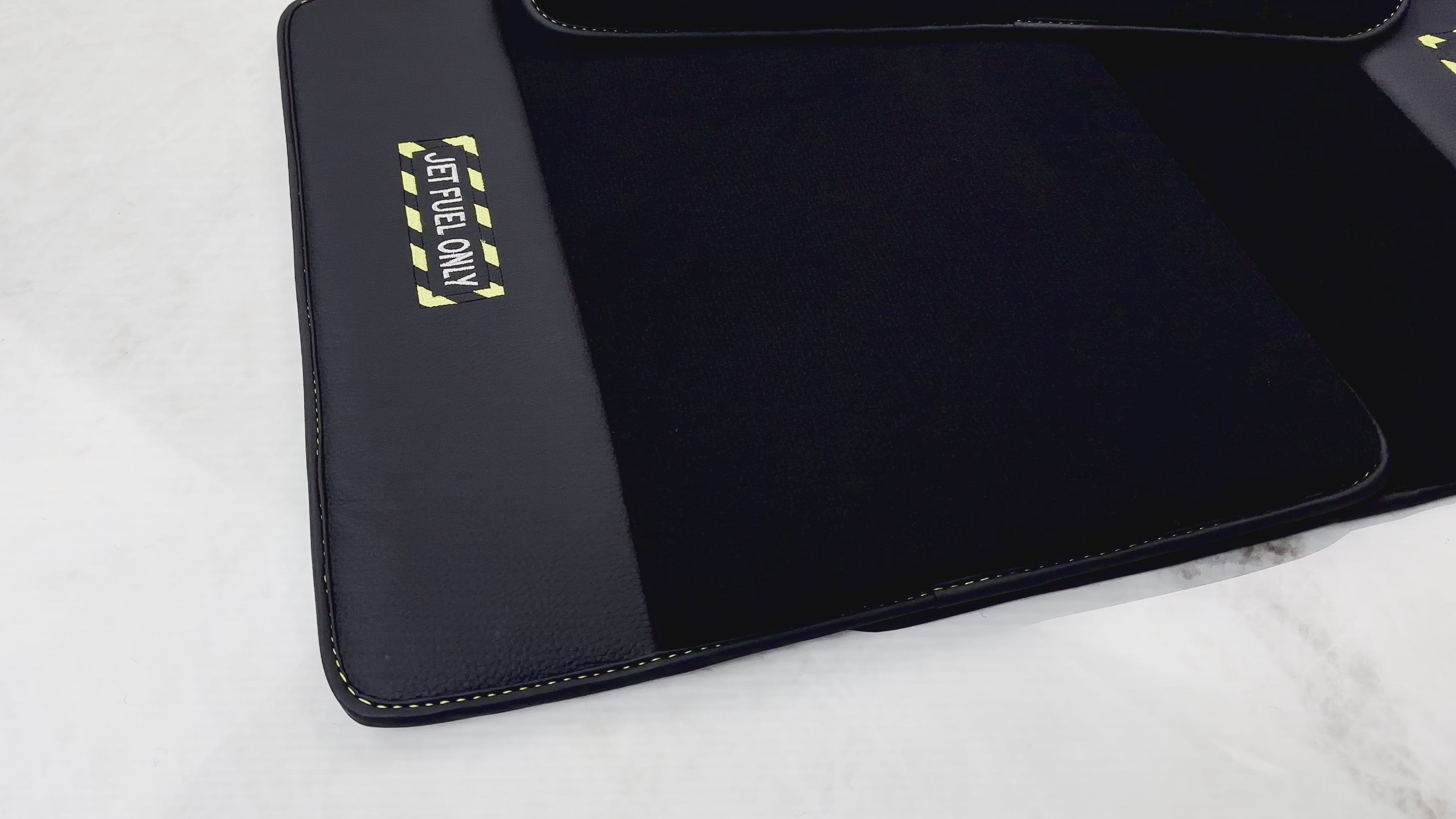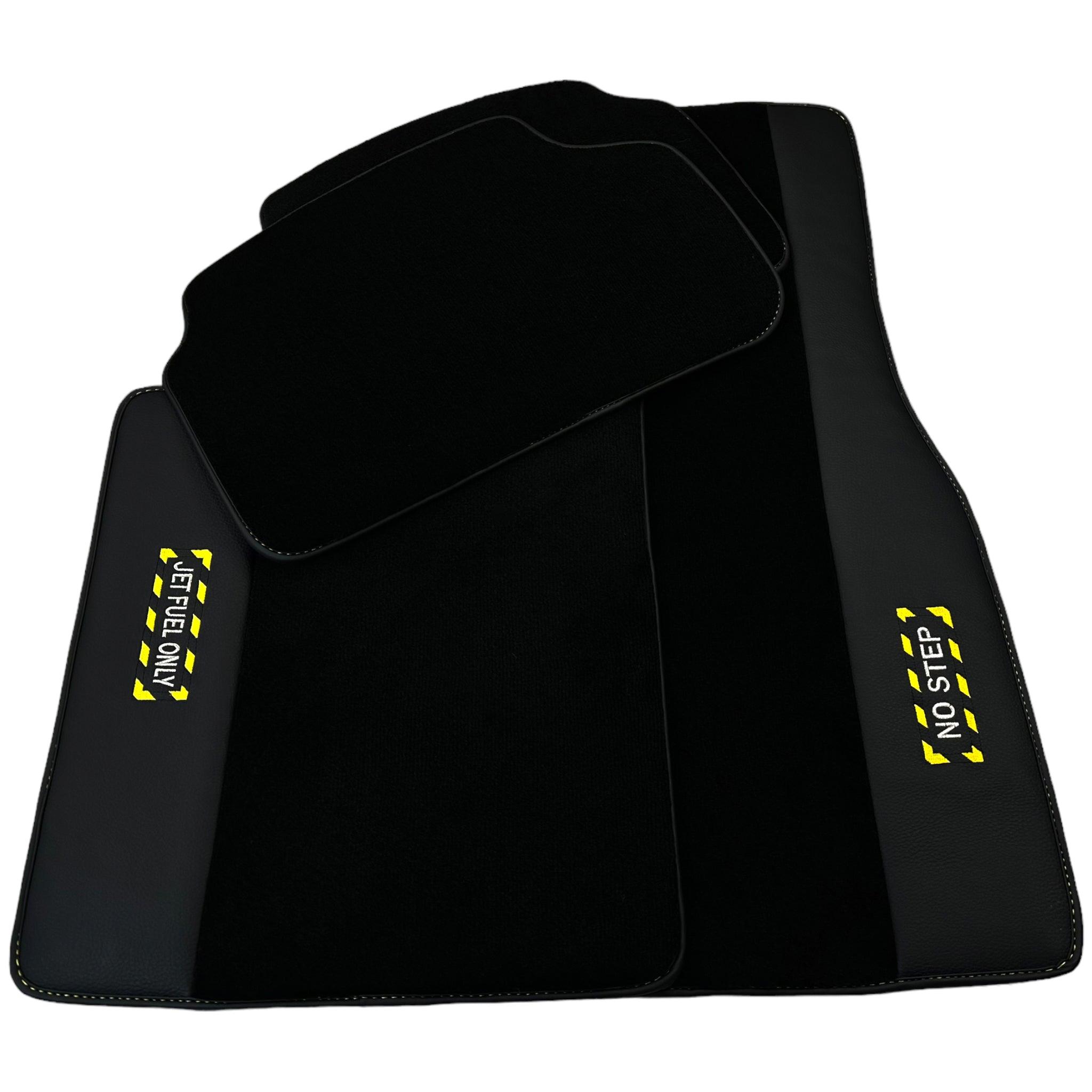 Schwarze Fußmatten mit Leder für BMW 5er G30 – „Nur Jet Fuel“