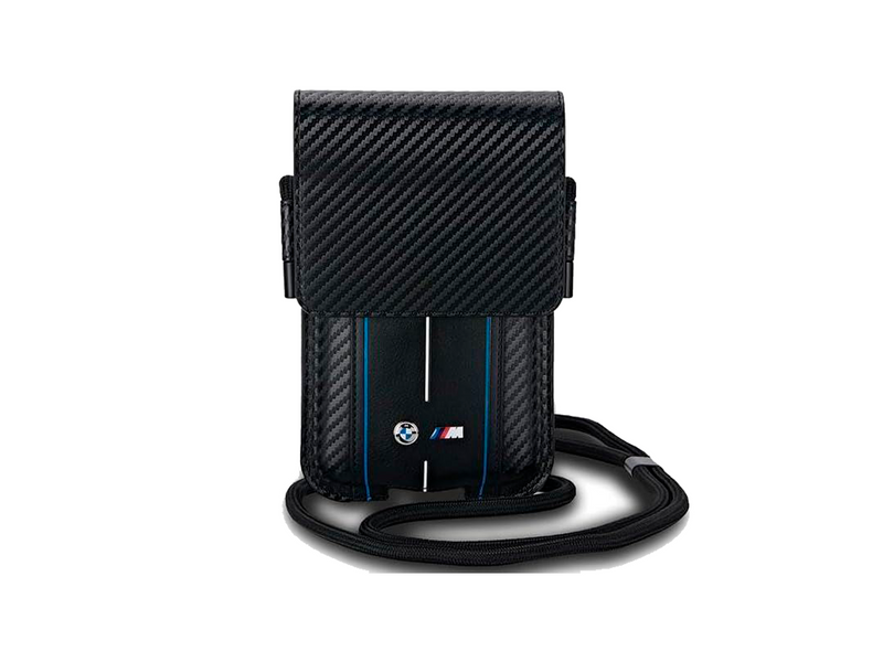 Hev din hverdag med BMW M Series Carbon & Blue Stripes telefonveske. Laget av slitesterkt eco-lær og nylon, kombinerer denne værbestandige vesken praktisk anvendelse med motorsportsinspirert stil. Med et elegant karbonmønster, M Performance-striper og offisiell BMW-merkemerking, gir den sikker oppbevaring for telefonen og kortene dine. Den justerbare stroppen sikrer komfort hele dagen, mens den romslige hovedlommen og den ekstra lommen holder alt organisert.