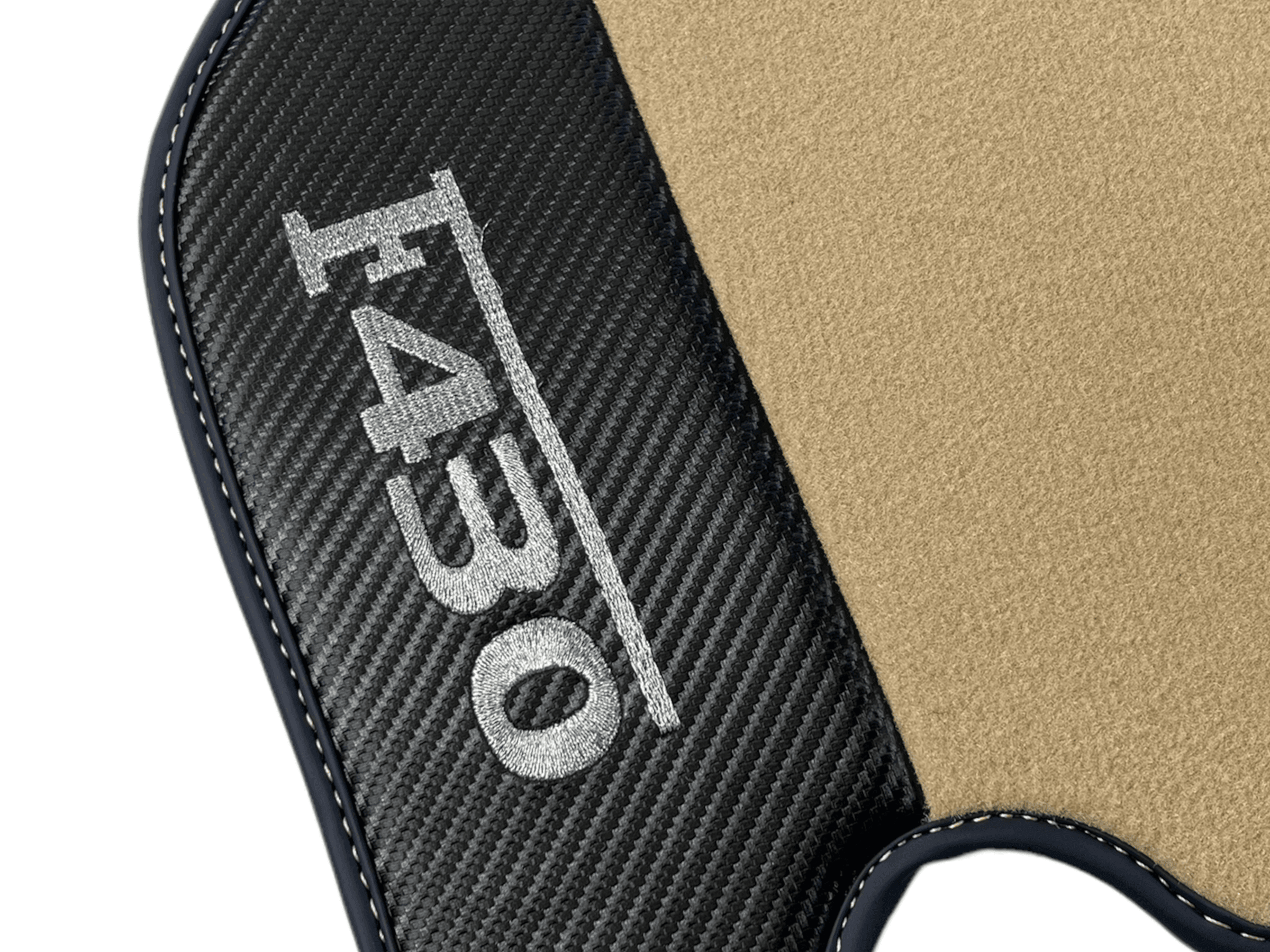 Beige bilmatter for Ferrari F430 2004-2009 med karbonfiberlær