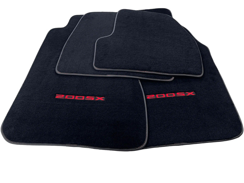 Svarte bilmatter for Nissan 200 SX (1989-1994) med rødt logo