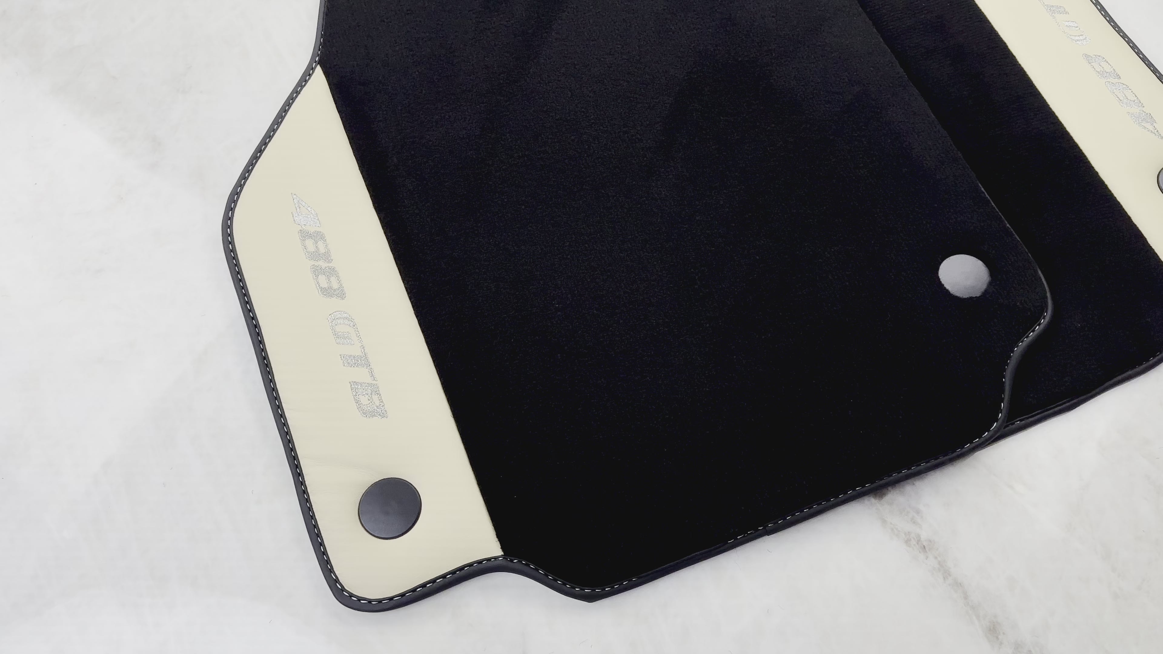 Svarte bilmatter for Ferrari 488 GTB (2015-2022) med Crema Nappa-lær