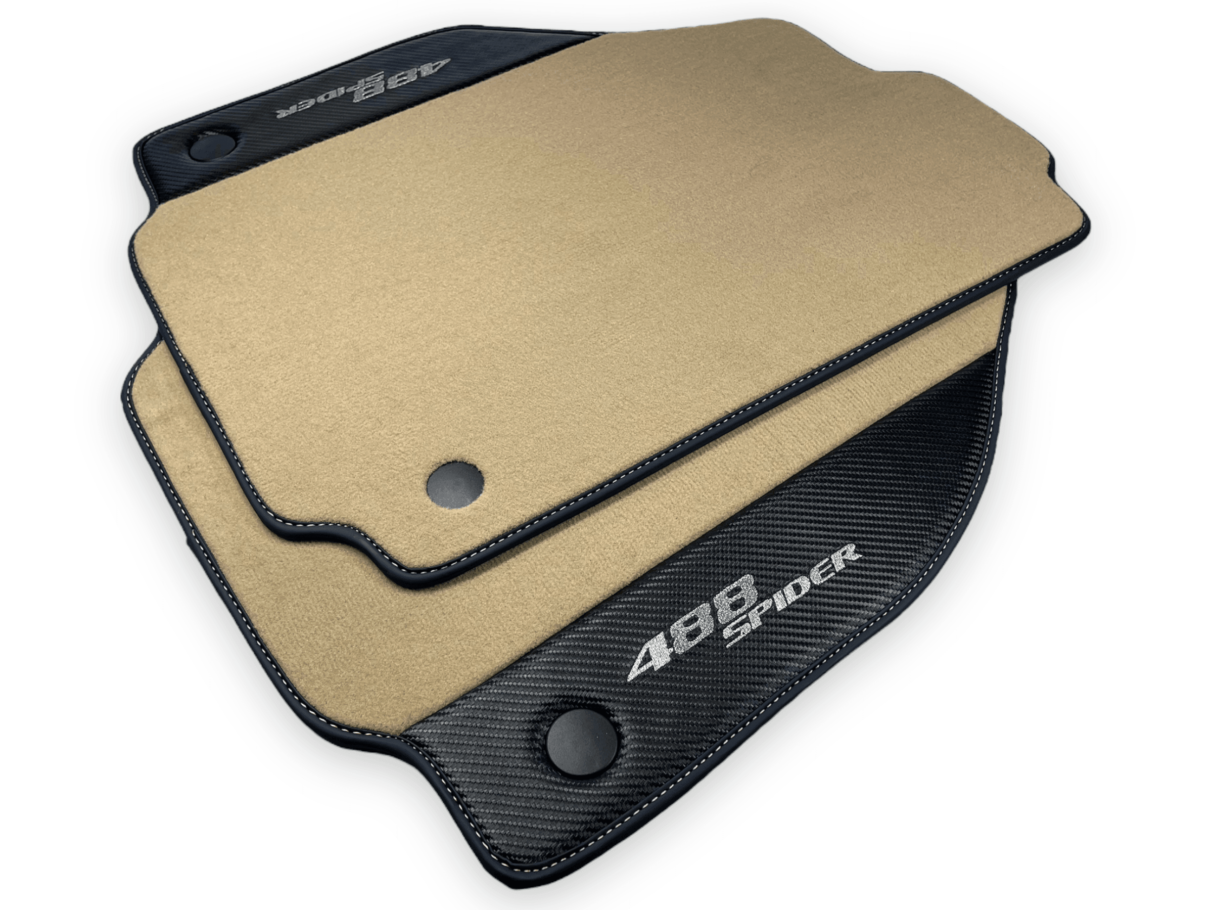 Beige bilmatter for Ferrari 488 Spider 2015-2022 med karbonfiberlær