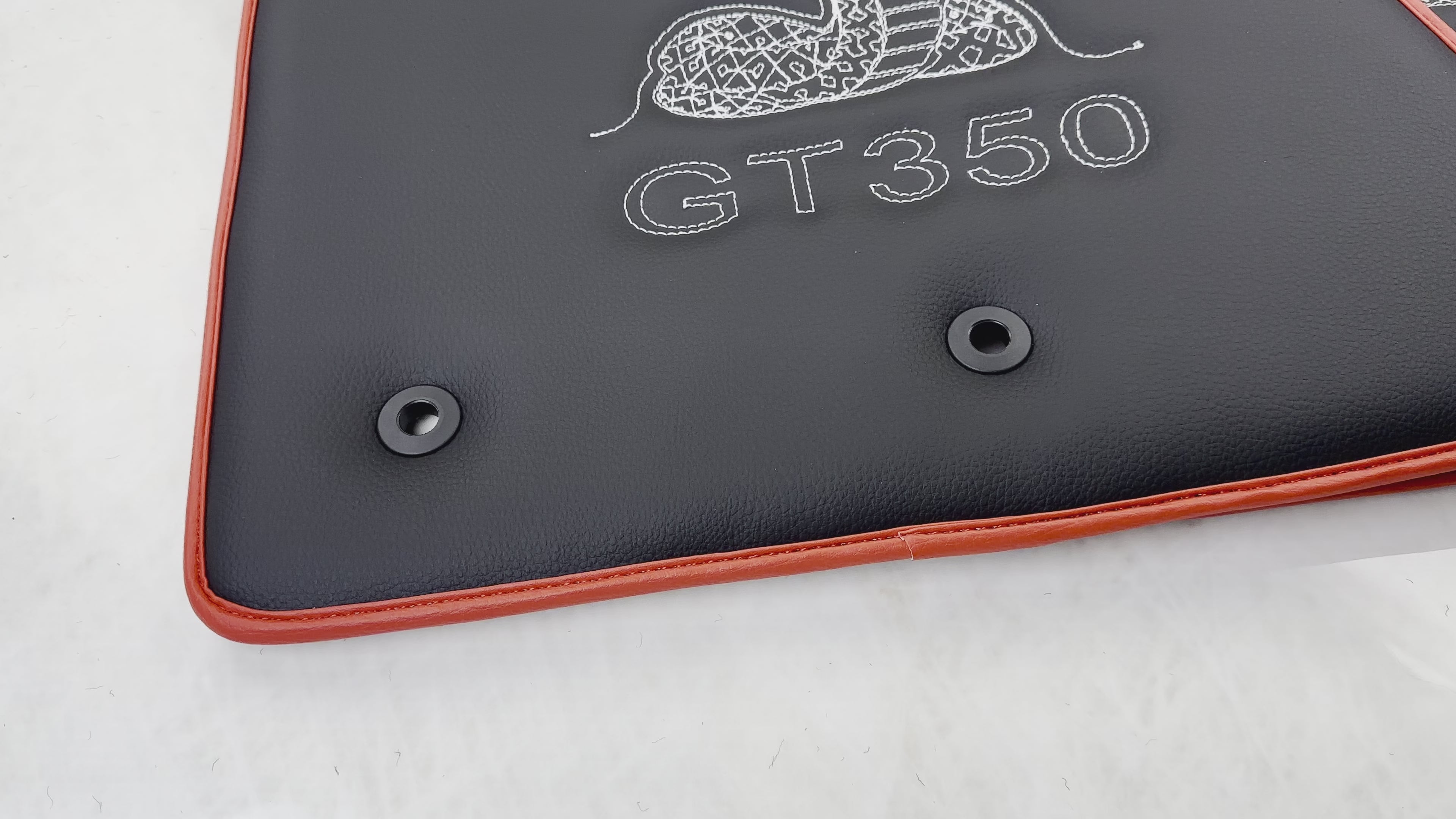 Lærbilmatter med røde kanter for Ford Mustang GT350 Shelby (2015-2021) med Cobra-søm