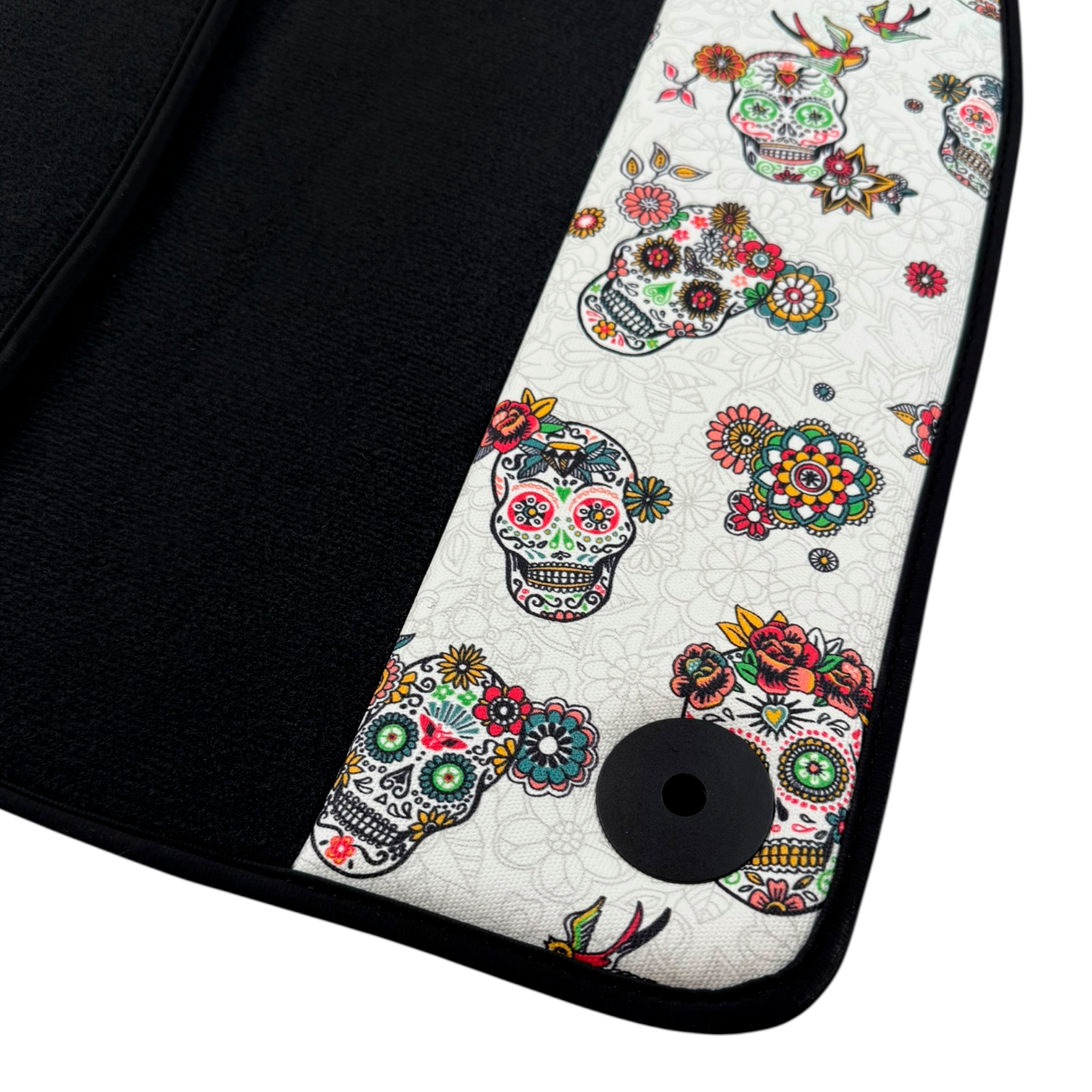 Enhance your Lamborghini Urus (2018-2026) interior with these black car floor mats featuring unique floral skull design borders. Crafted to fit perfectly, they offer reliable protection against dirt and wear while adding a bold, stylish touch. Durable and easy to clean, these mats help maintain your vehicle’s pristine condition with a distinctive look that reflects your personality.