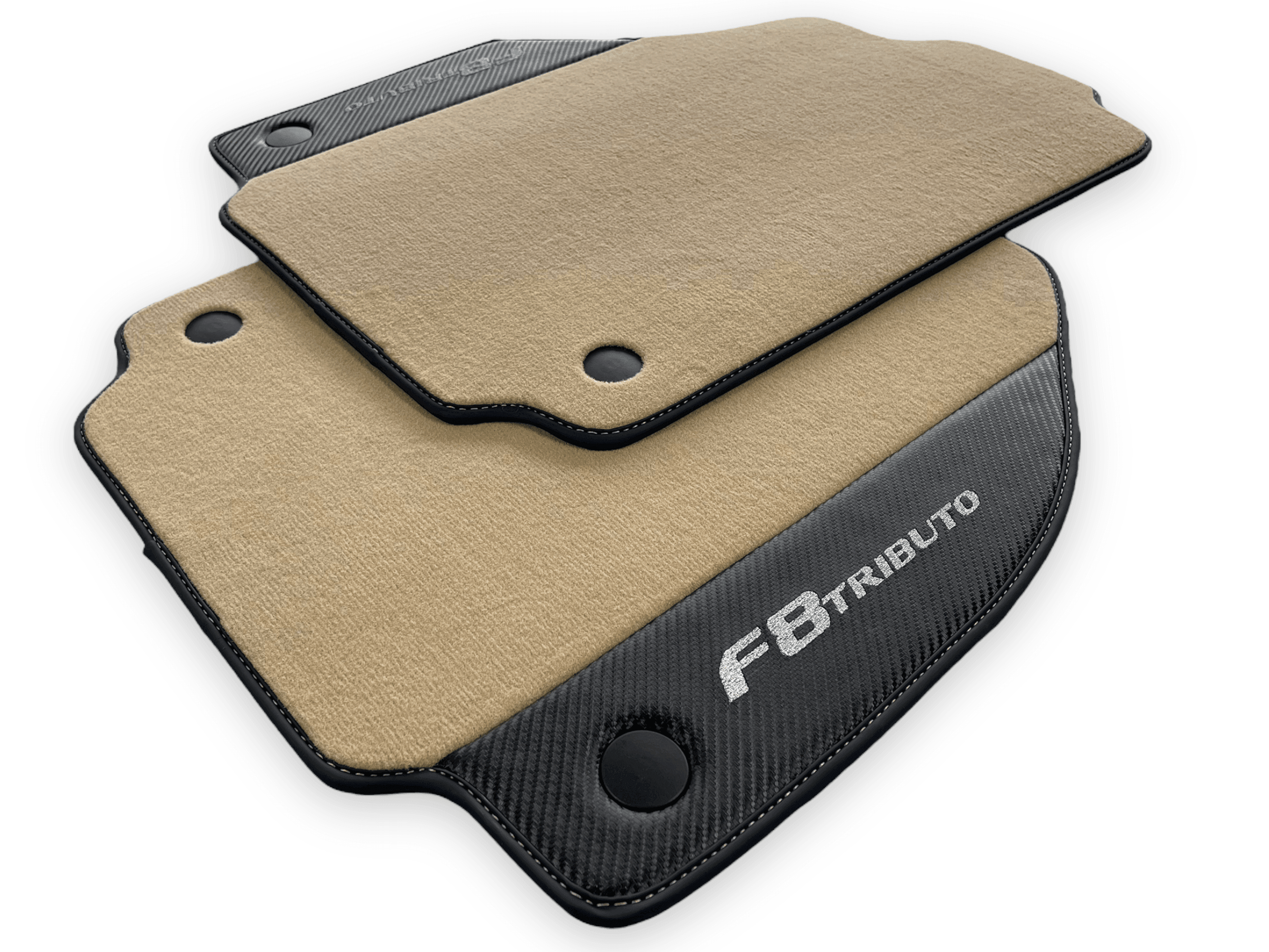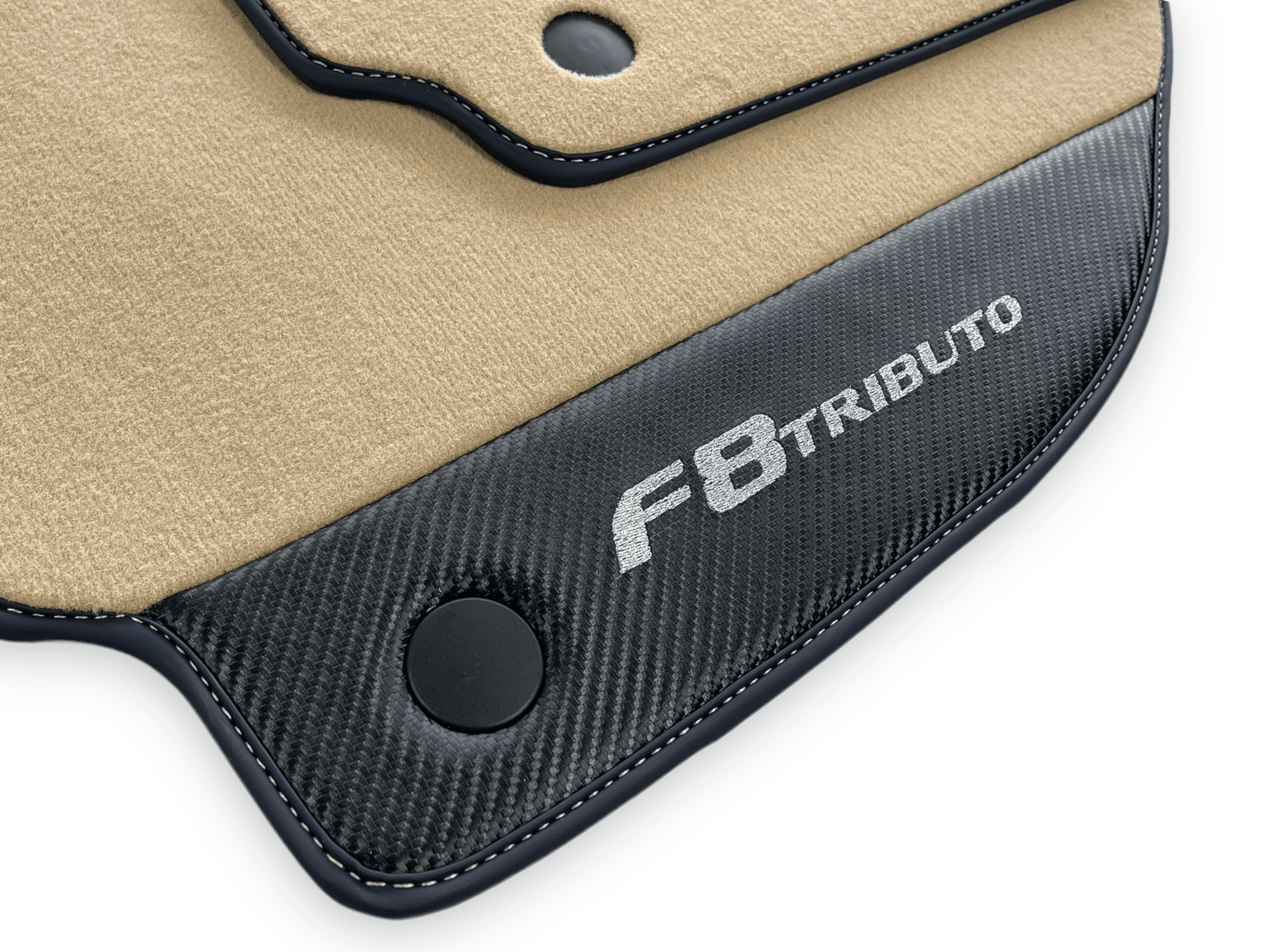 Beige bilmatter for Ferrari F8 Tributo 2019-2022 med karbonlær