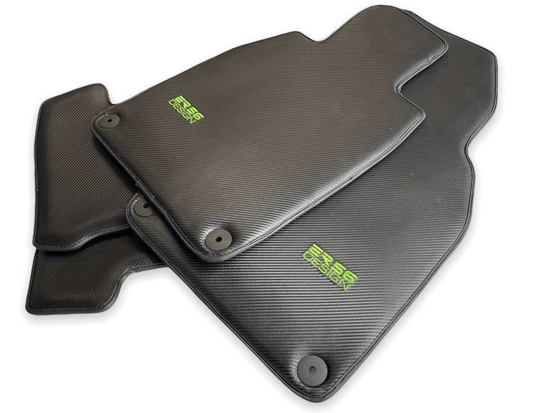 Karbonfiber bilmatter for Porsche Cayenne (2010-2018) Grønn søm