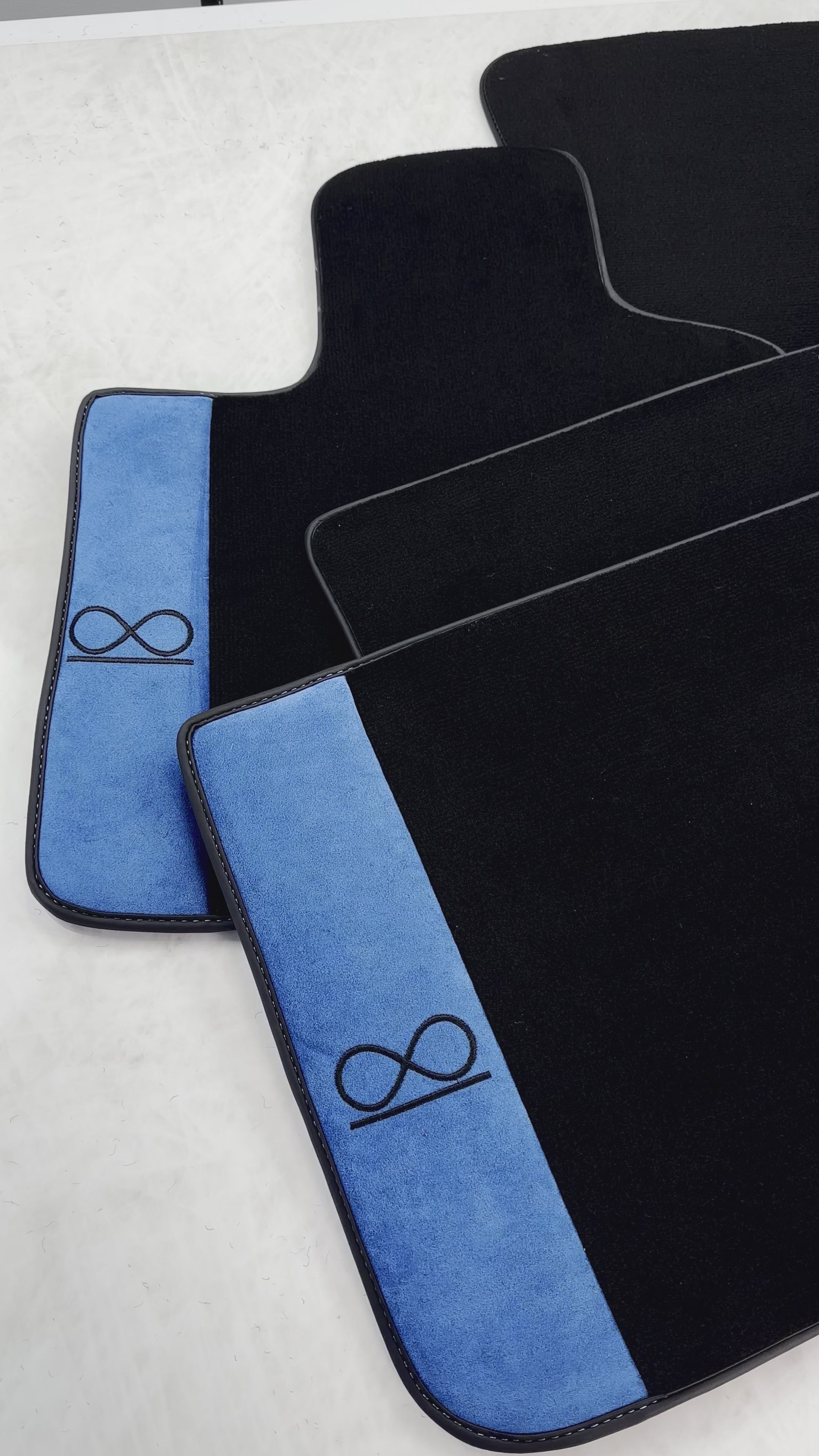 Sorte bilmatter for Rolls Royce Black Badge Cullinan blå Alcantara lær