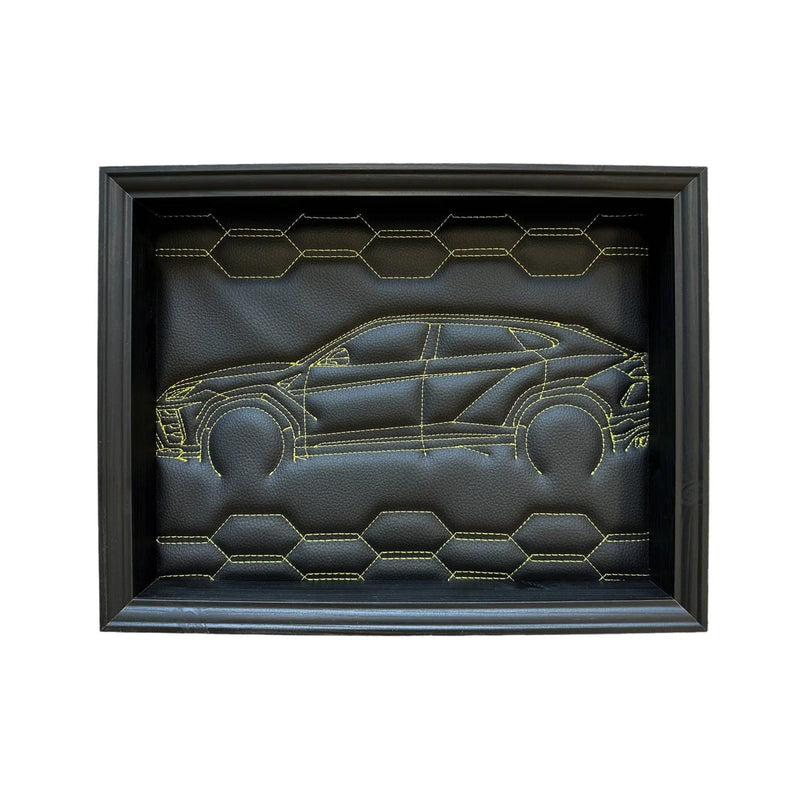 Svart skinn Lamborghini Urus inspirert veggkunst: Brodert gul søm