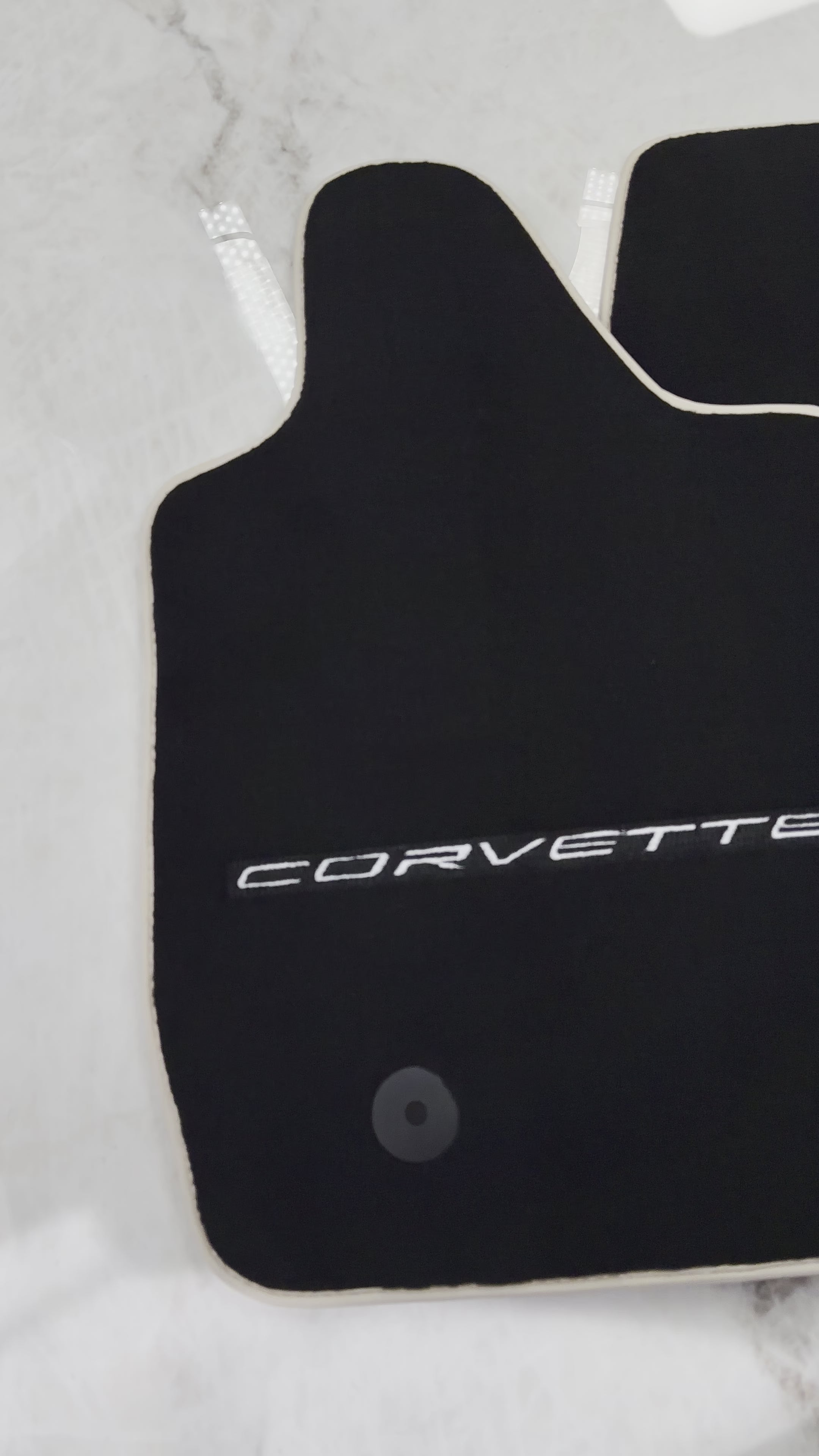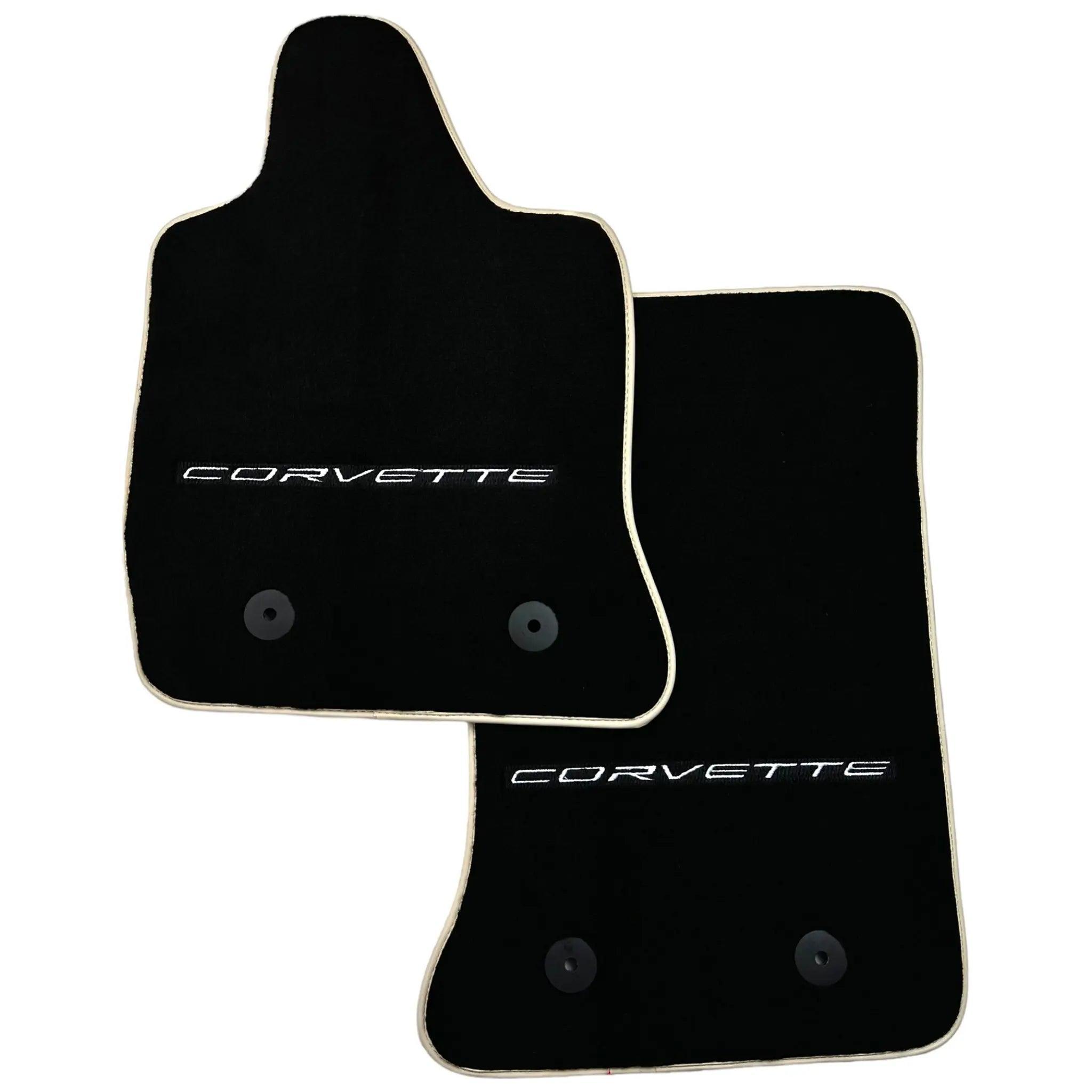 Svarte bilmatter for Chevrolet Corvette C7 Convertible (2014-2019) med beige kant