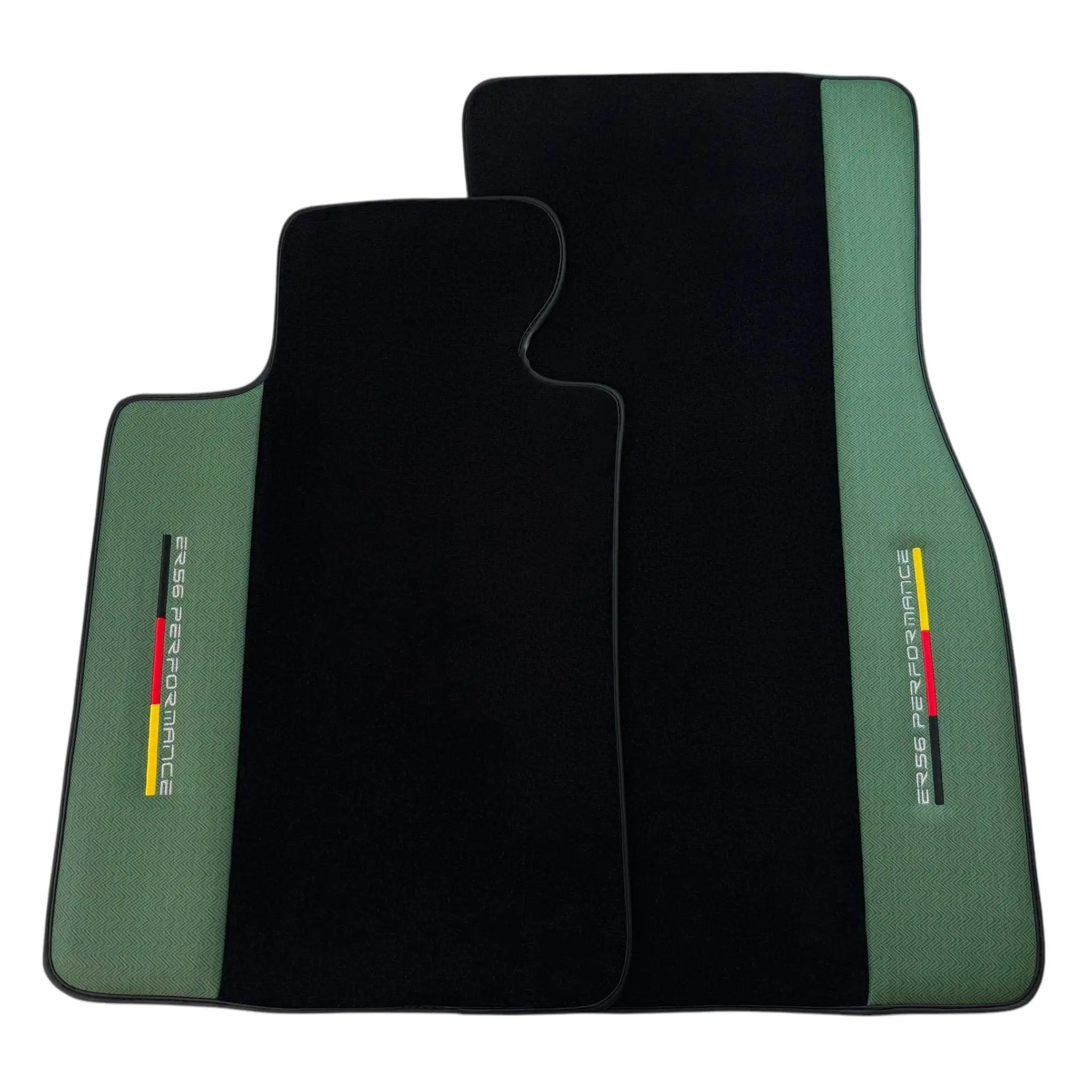 Svart bilmatter for BMW 5-serie G30 med grønt læder ER56 Performance