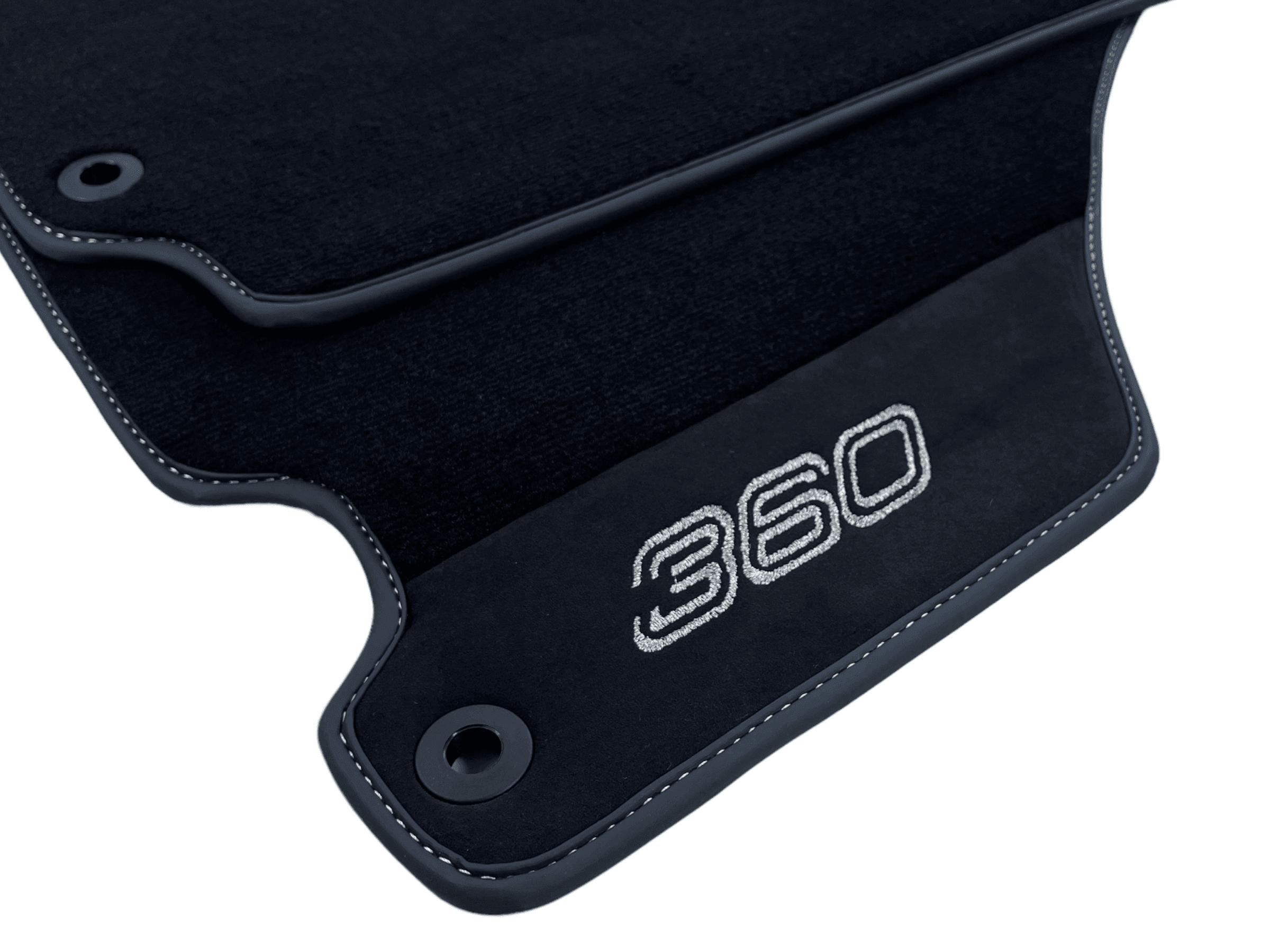 Svart bilmatter for Ferrari 360 Modena 1999-2005 med Alcantara-lær