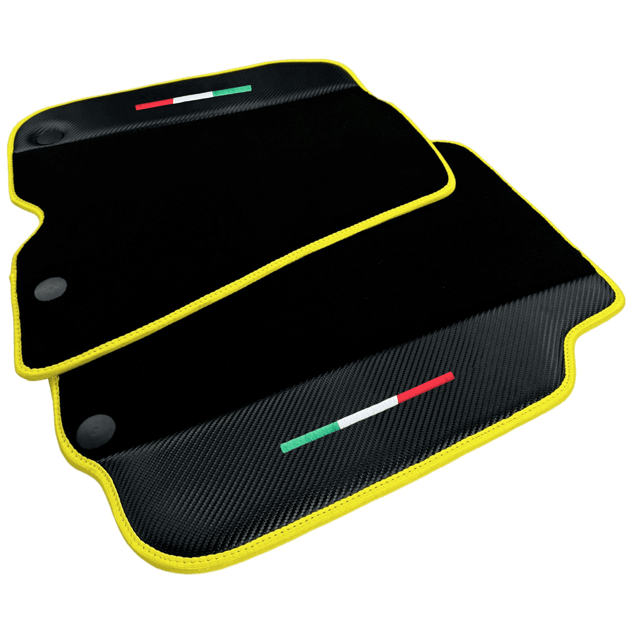 Svart bilmatter for Ferrari F12 Berlinetta (2012-2022) med karbonlær