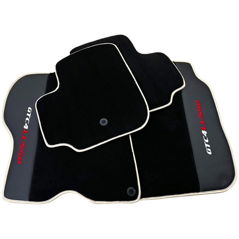Svarte bilmatter til Ferrari GTC4 Lusso (2016-2023) med lær | Beige kant