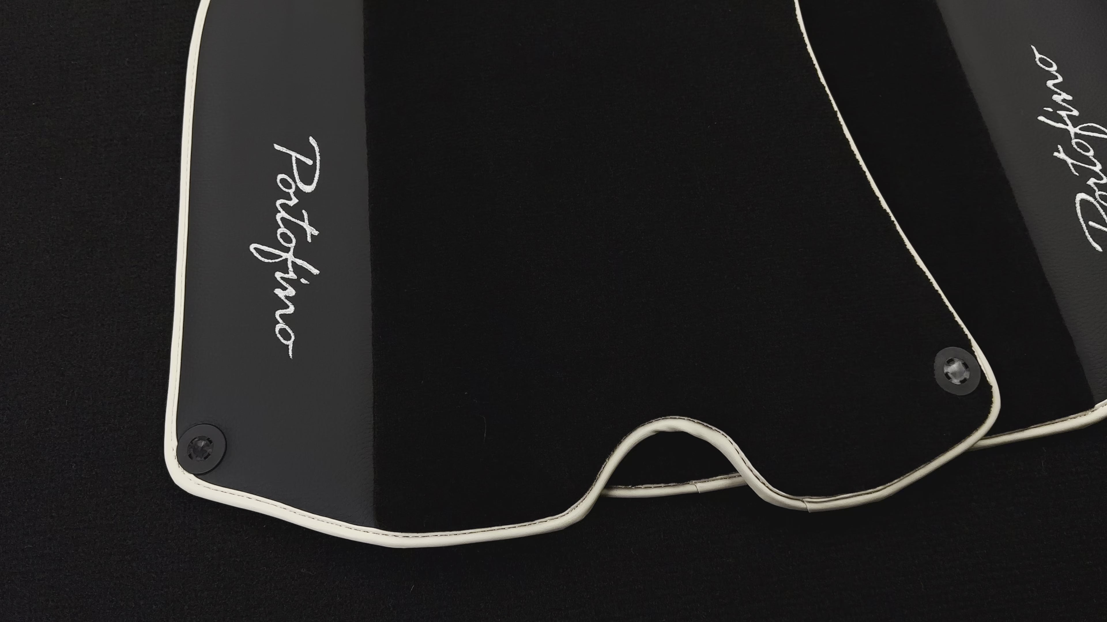 Svart bilmatter for Ferrari Portofino (2018-2023) med lær og beige trim