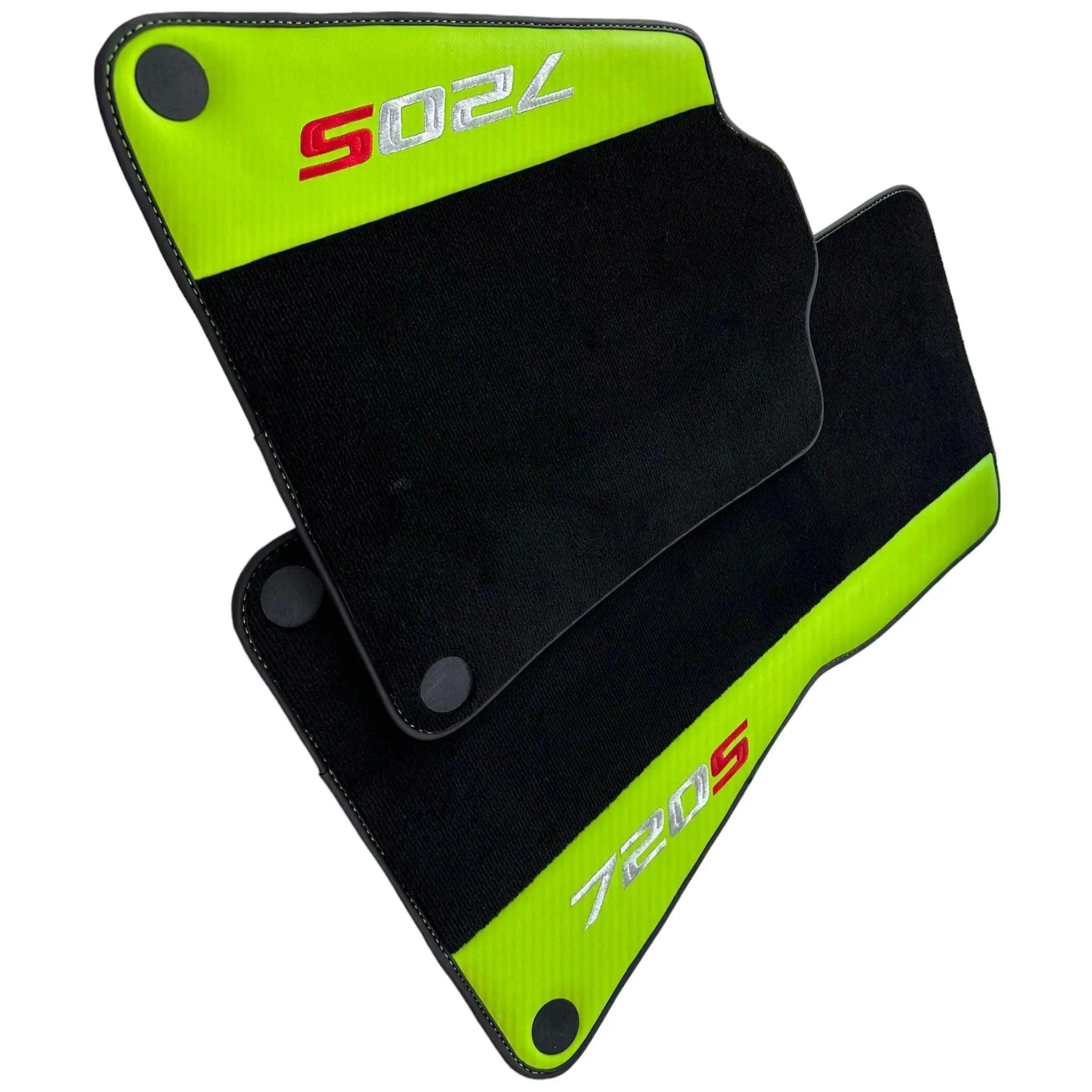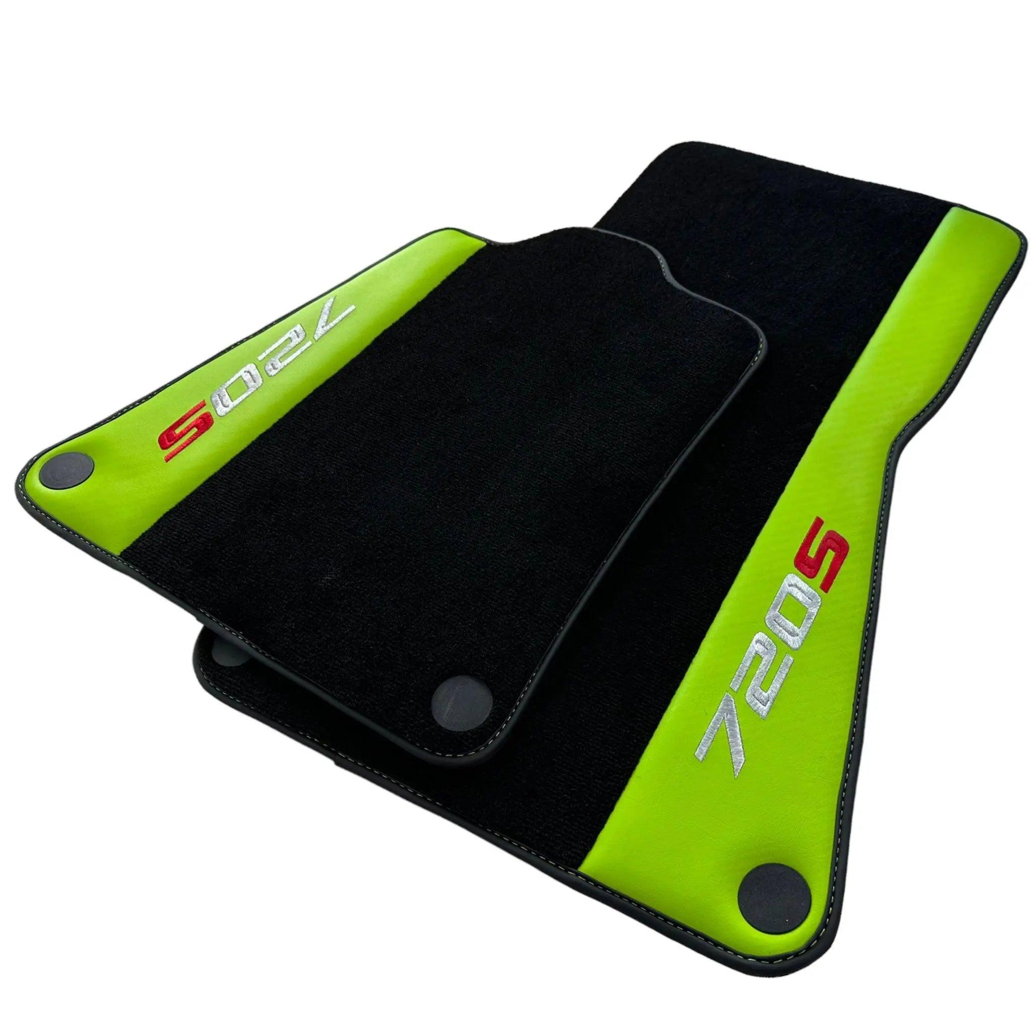 Svart bilmatter for McLaren 720S år 2017-2021 med grønt lær