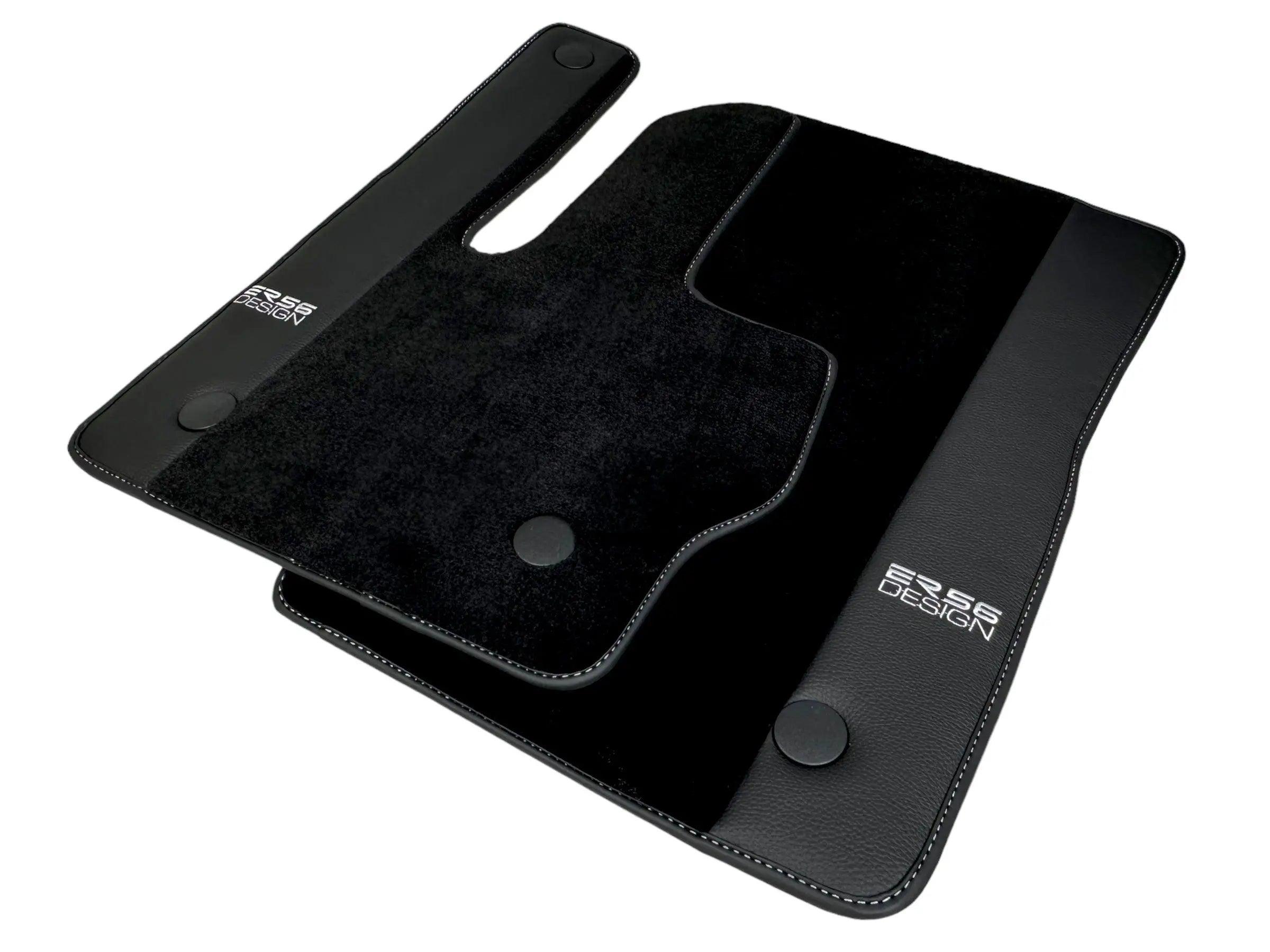 Svarte bilmatter for Mercedes-Benz G Class W461 (1979-2008) med lærkanter ER56-design