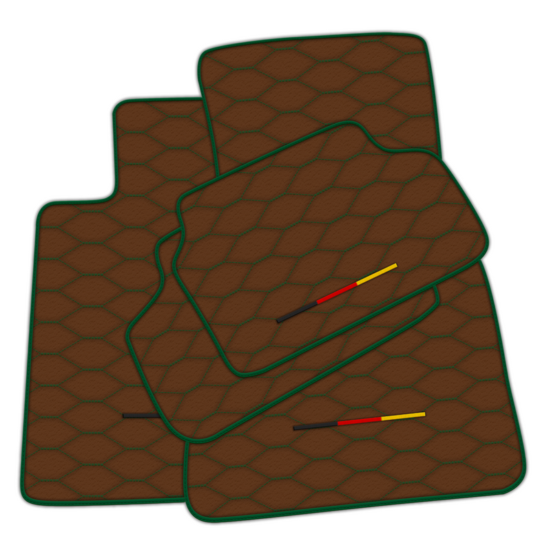 Oppgrader din BMW med disse luksuriøse brune skinnmattene. Viper hex-mønster, grønn søm og mørkegrønn kant gir en stilfull og unik tillegg til bilen din. Ferdiglaget med tysk presisjon, er disse mattene ikke bare holdbare, men gir også et snev av eleganse til kjøretøyet ditt.