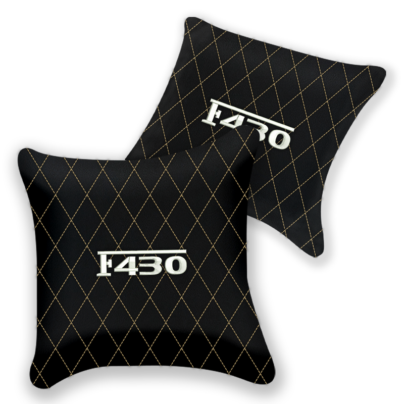 Elevate your Ferrari F430's interior with this premium leather pillow set. Crafted specifically for your 2004-2009 model, these two customizable black leather pillows combine luxury with comfort. Choose from multiple stitching color options to match your personal style and vehicle's aesthetic. The high-quality leather construction ensures durability and easy maintenance, while the tailored fit enhances your driving experience. Perfect for long journeys or simply adding that refined touch to your cockpit. Transform your F430 into a more inviting space with these sophisticated accessories.