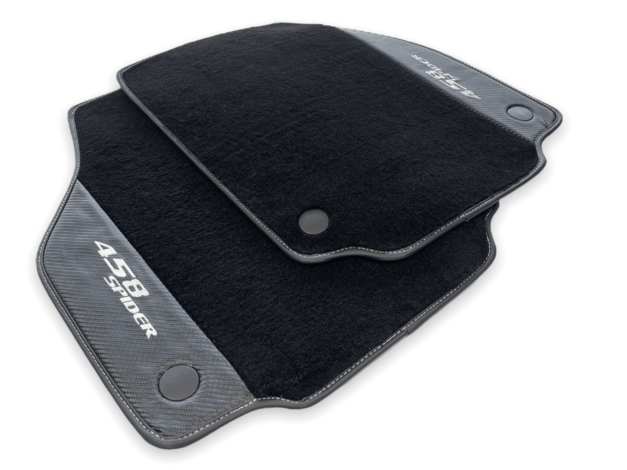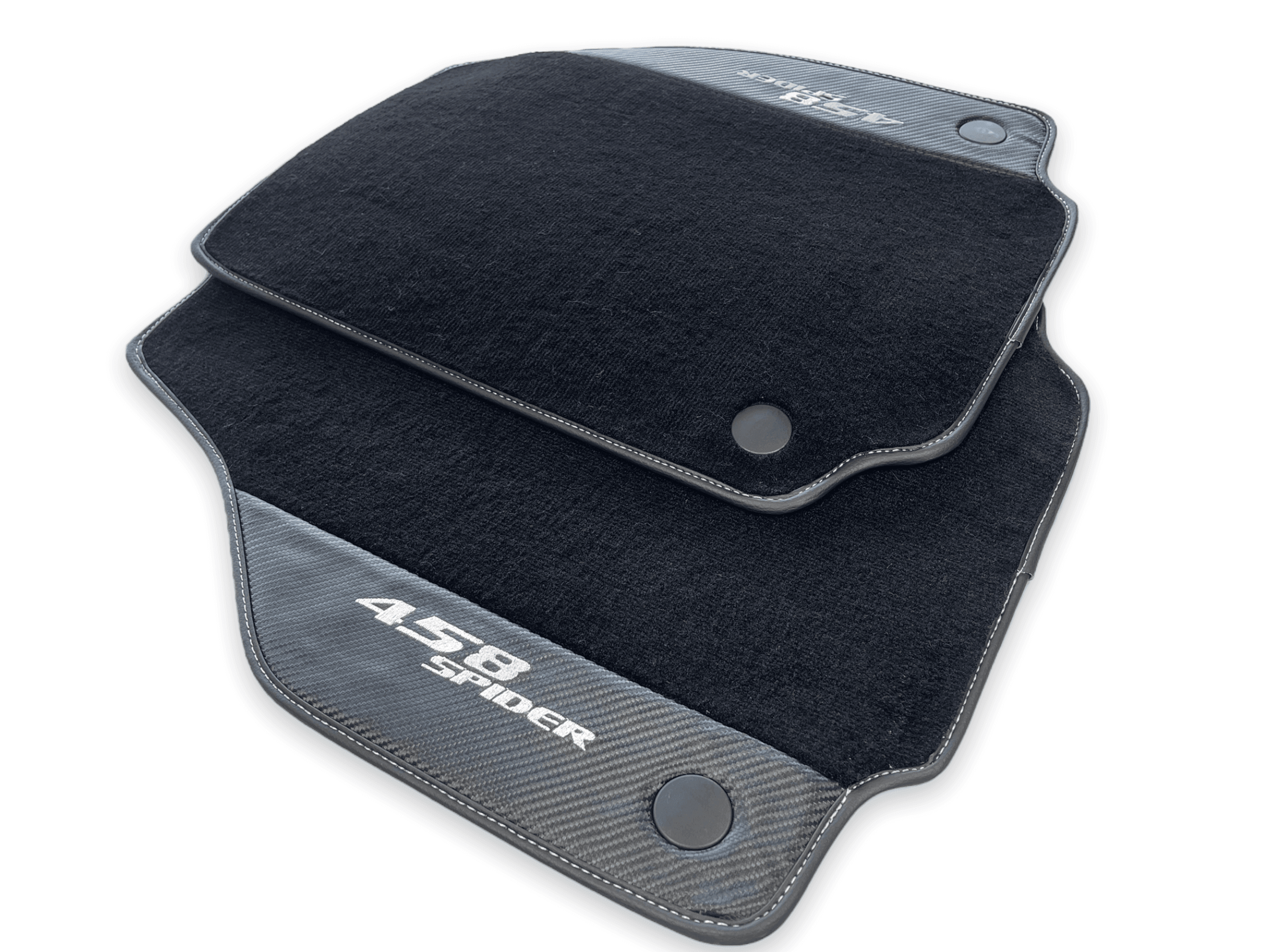 Beskytt gulvet i din Ferrari 458 Spider med våre karbonskinn bilmatter. Deres slitesterke design og perfekte passform gir 100 % dekning, og forhindrer smuss og rusk fra å skade teppet ditt. Oppgrader luksusbilen din med disse elegante bilmattene for et glattet og polert utseende.